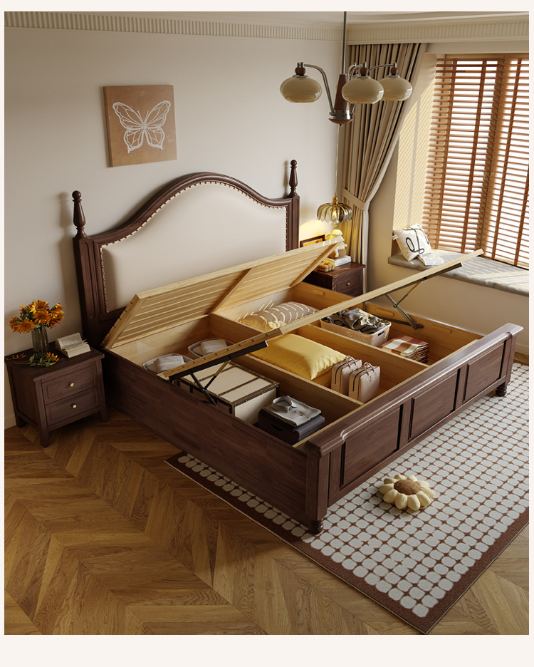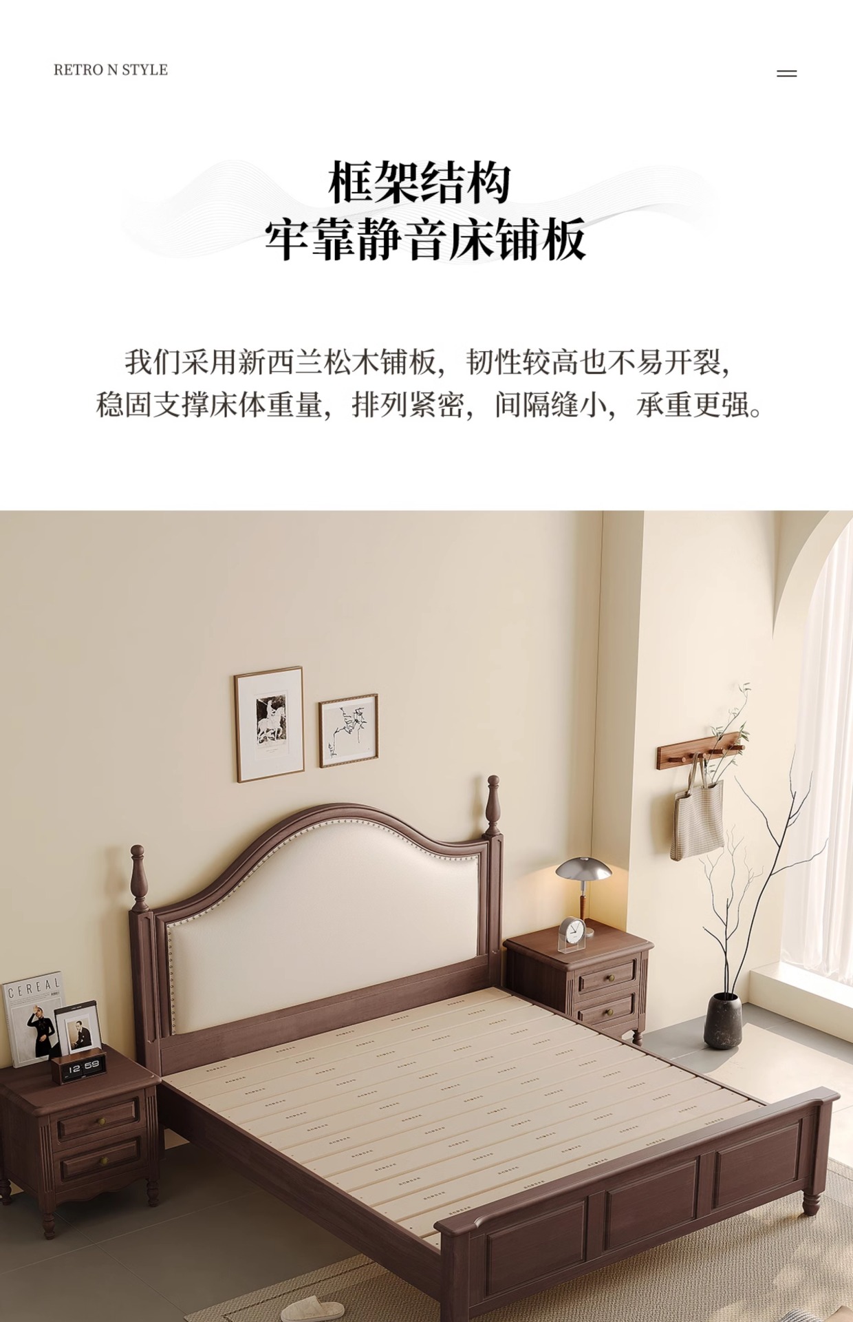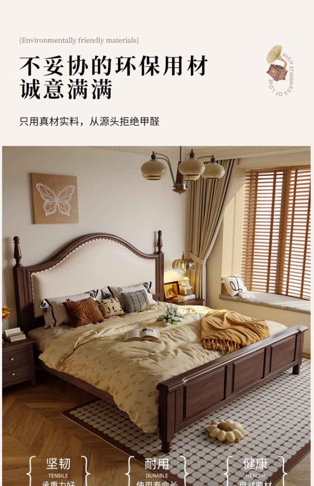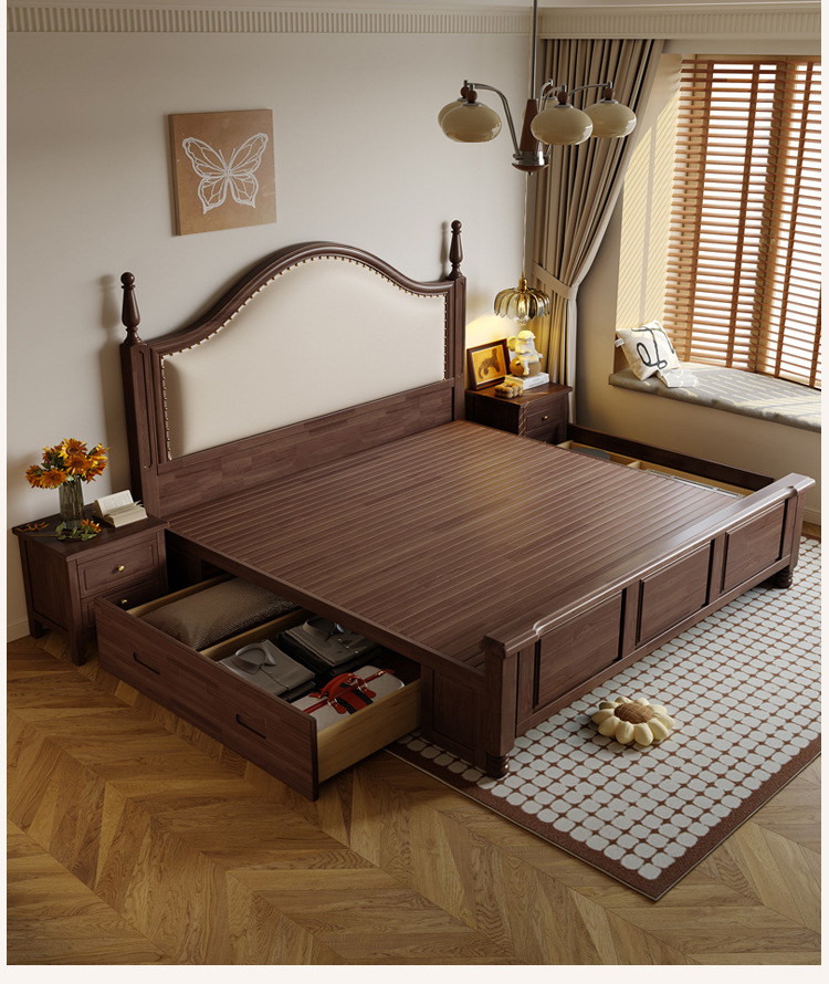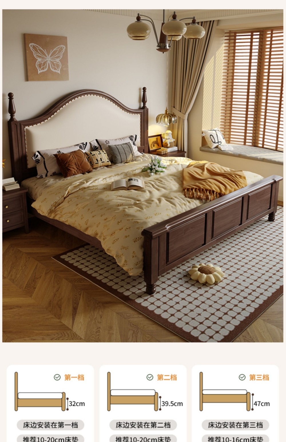 미국 국가 전체 단단한 나무 침대 1.8m 더블 침대 골동품 마스터 침실 작은 아파트 웨딩 침대 가정용 침실 부드러운 침대