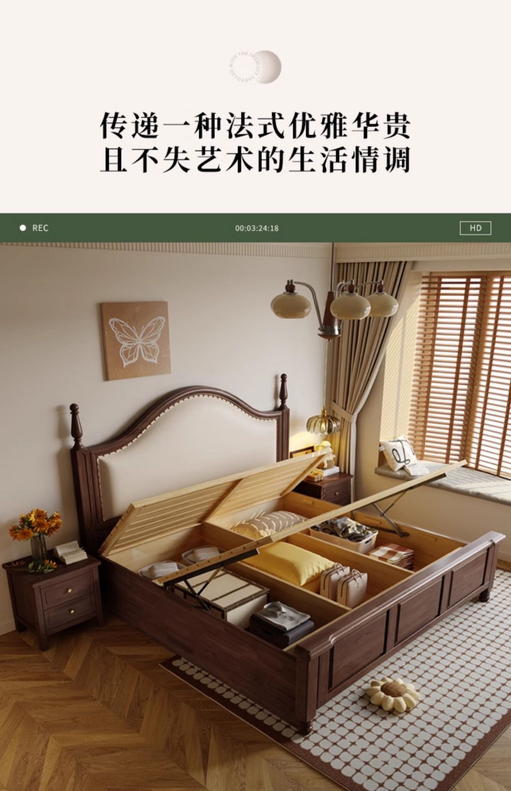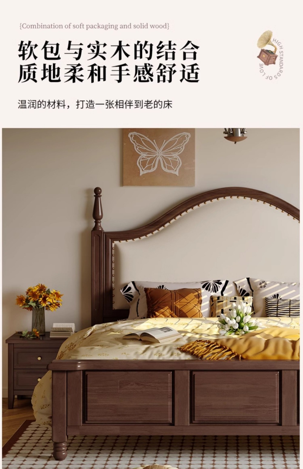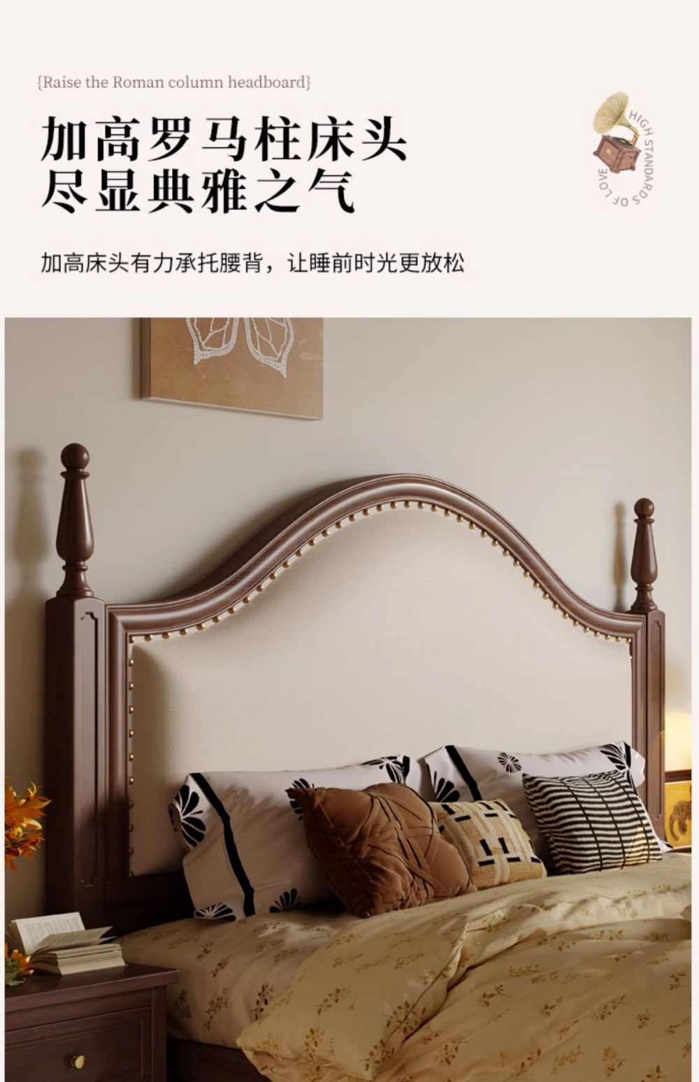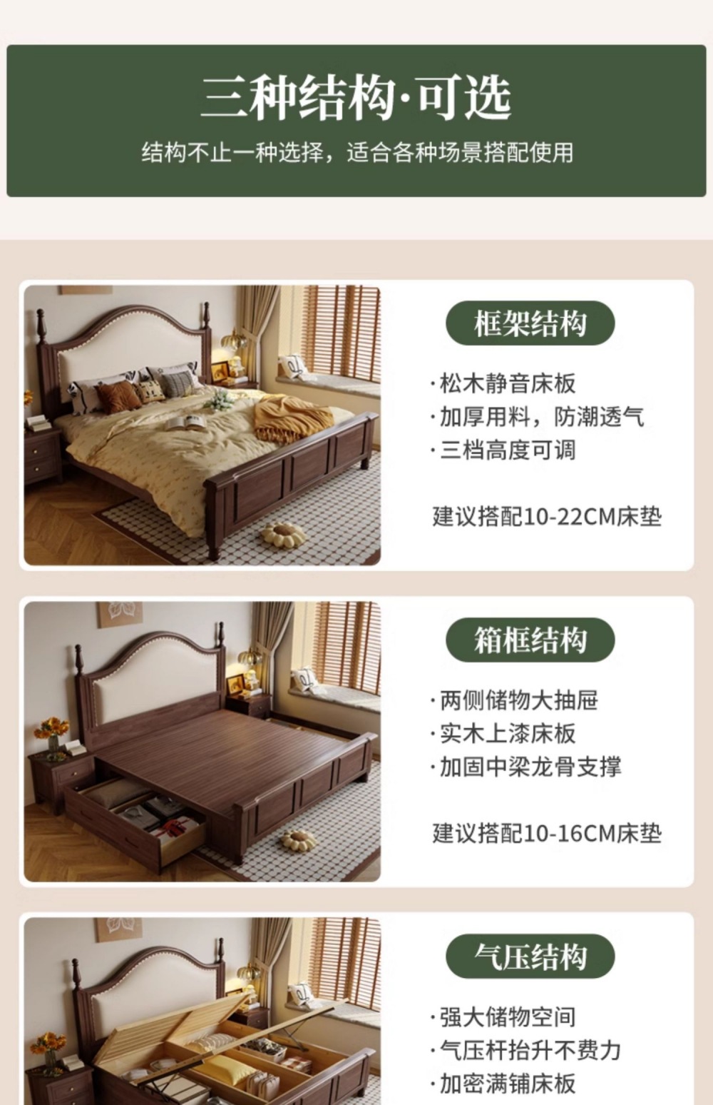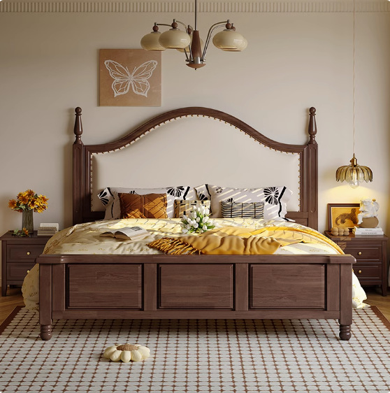 미국 국가 전체 단단한 나무 침대 1.8m 더블 침대 골동품 마스터 침실 작은 아파트 웨딩 침대 가정용 침실 부드러운 침대