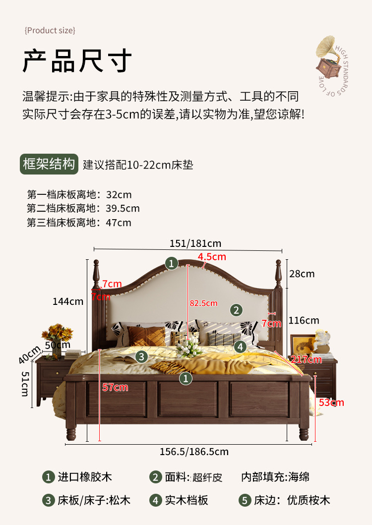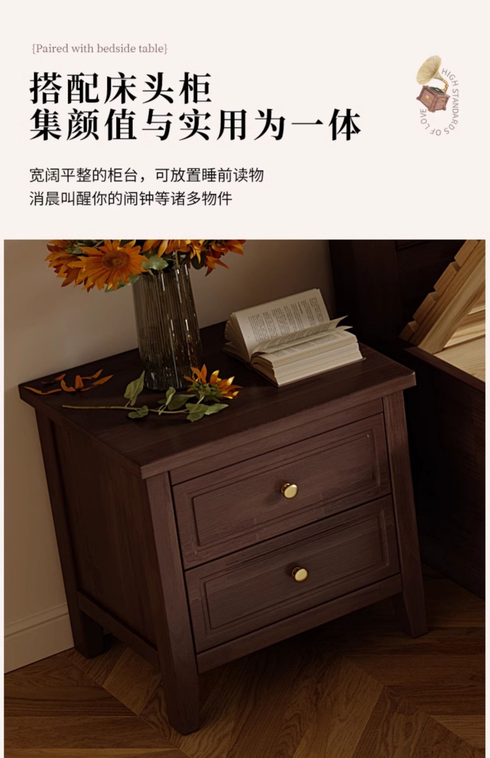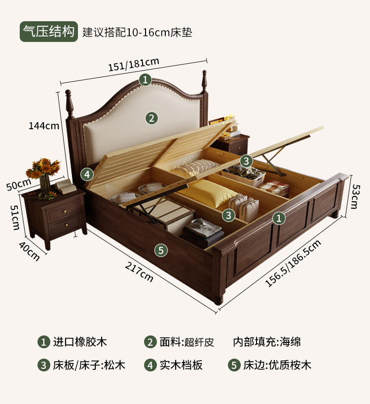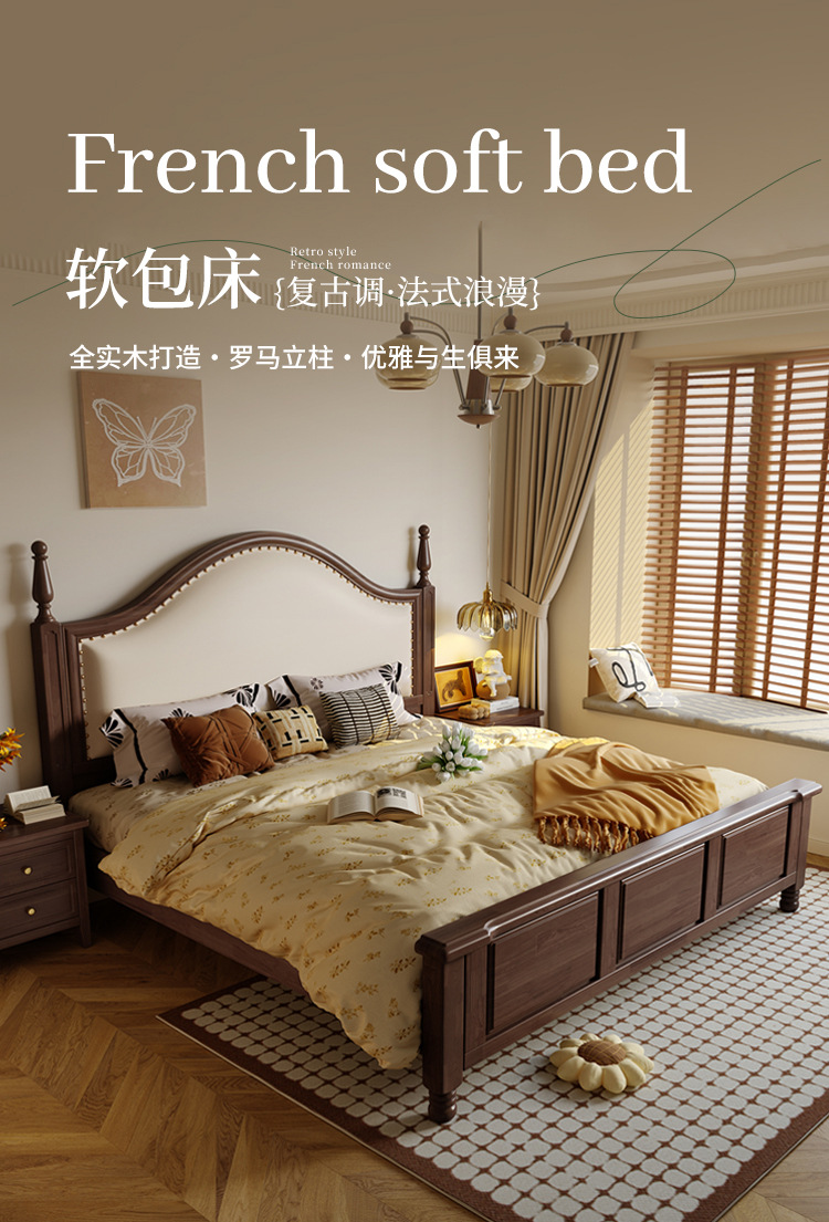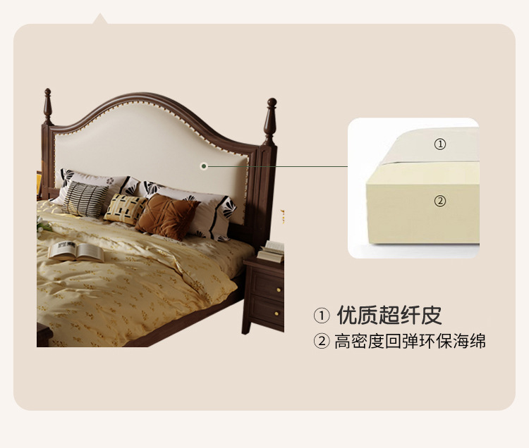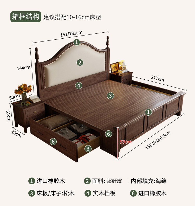 미국 국가 전체 단단한 나무 침대 1.8m 더블 침대 골동품 마스터 침실 작은 아파트 웨딩 침대 가정용 침실 부드러운 침대