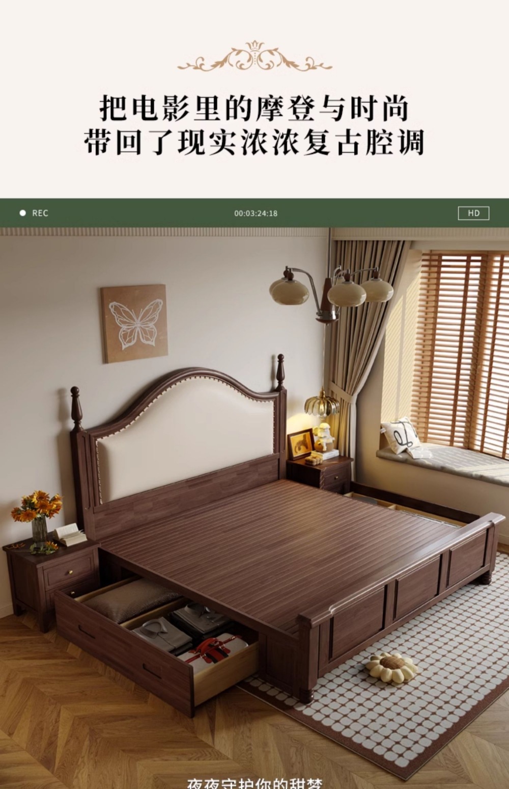 미국 국가 전체 단단한 나무 침대 1.8m 더블 침대 골동품 마스터 침실 작은 아파트 웨딩 침대 가정용 침실 부드러운 침대스토어 가기