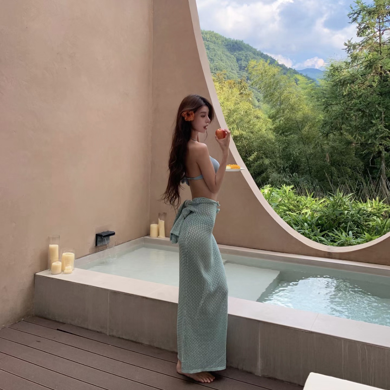 새로운 고급 섹시 넥 비키니 스플릿 수영복 여성용 작은 가슴 스틸 브래킷 모임 휴일 온천 수영복스토어 가기