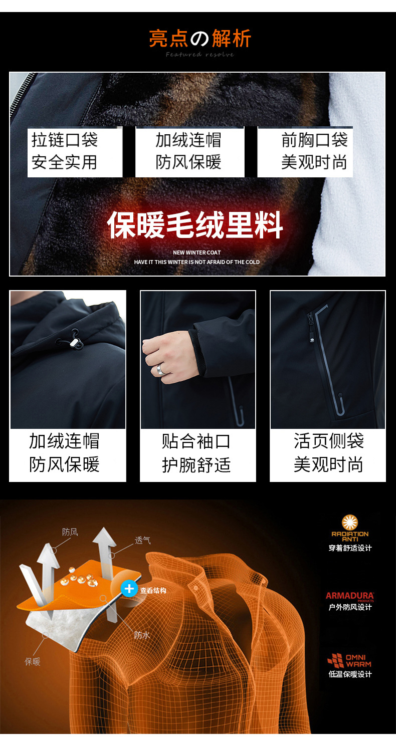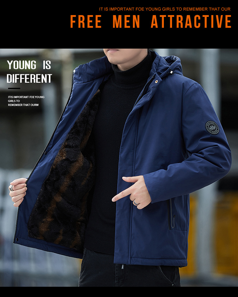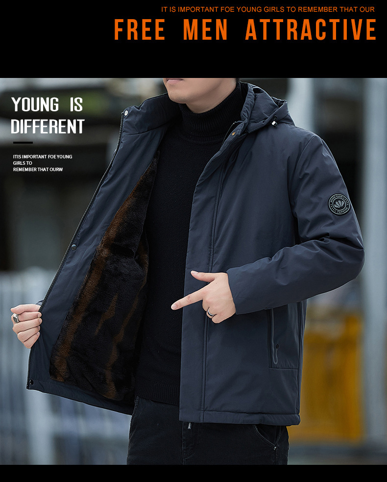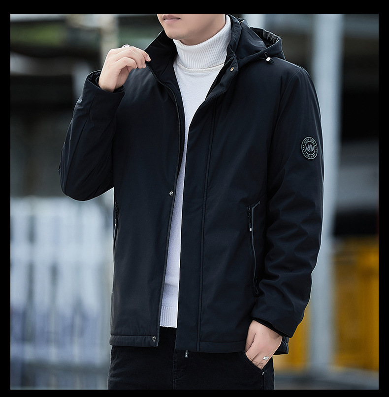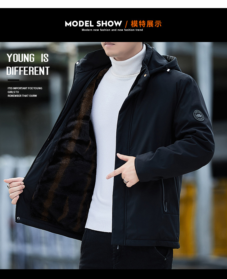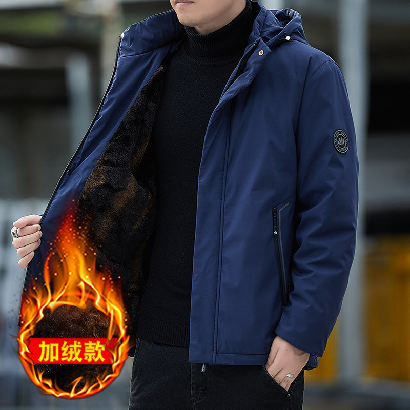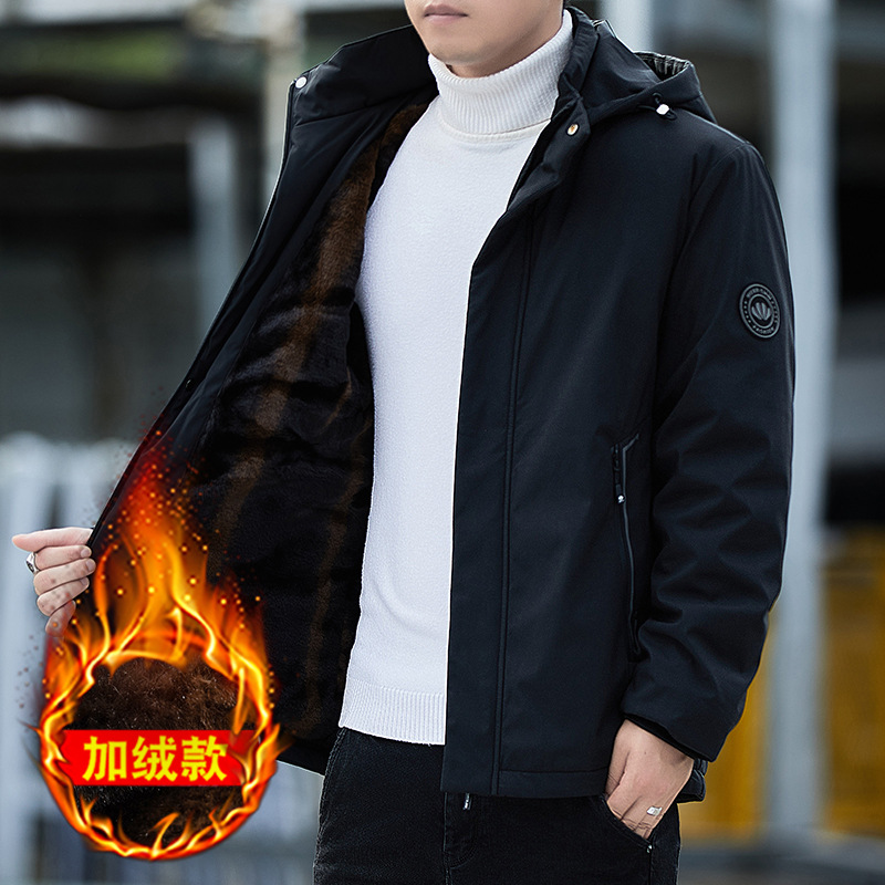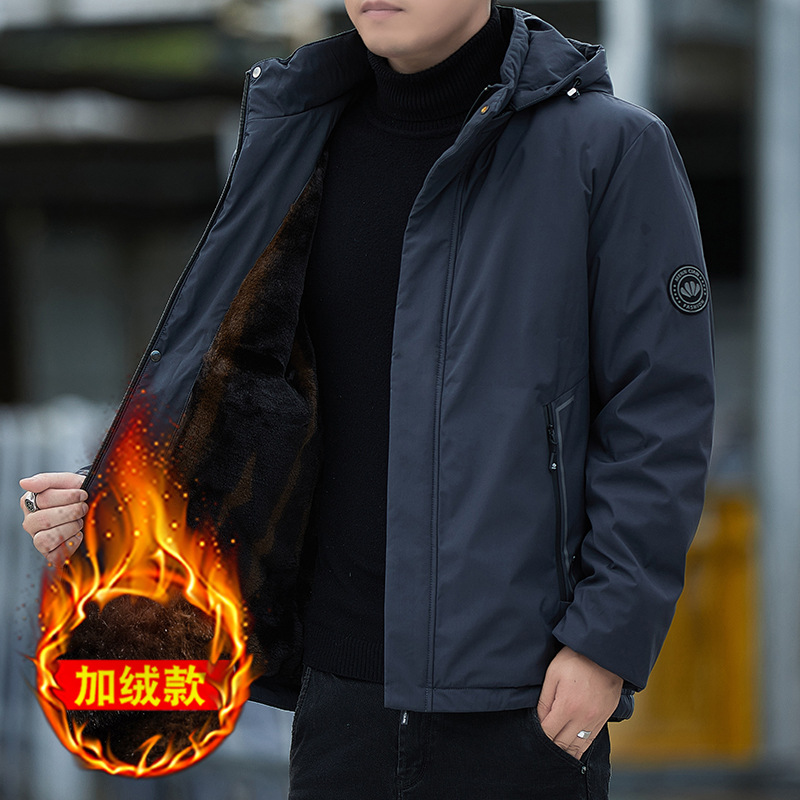 남자 기모 후드 자켓 따뜻한 두꺼운 2024 가을 및 겨울 새로운 남자 재킷 올 매치 재킷 아우터 웨어스토어 가기