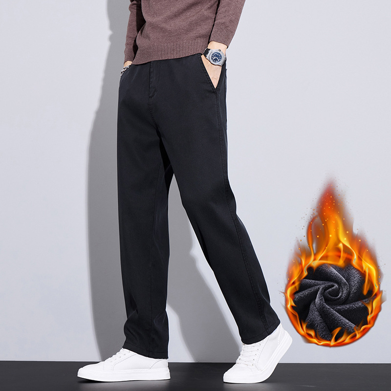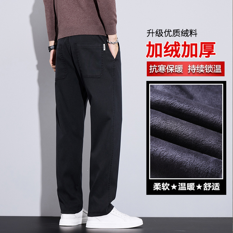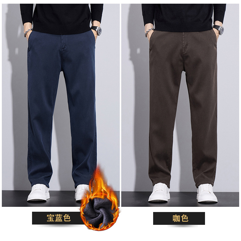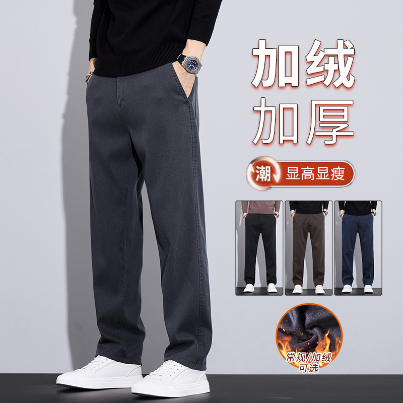 2024 가을/겨울 기모 넓은 다리 사업 캐주얼 바지 남성용 올매치 스트레이트 바지 스트레치 트렌디 브랜드 바지