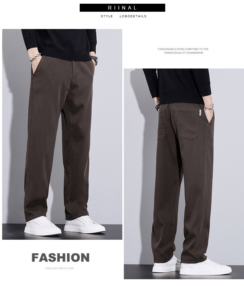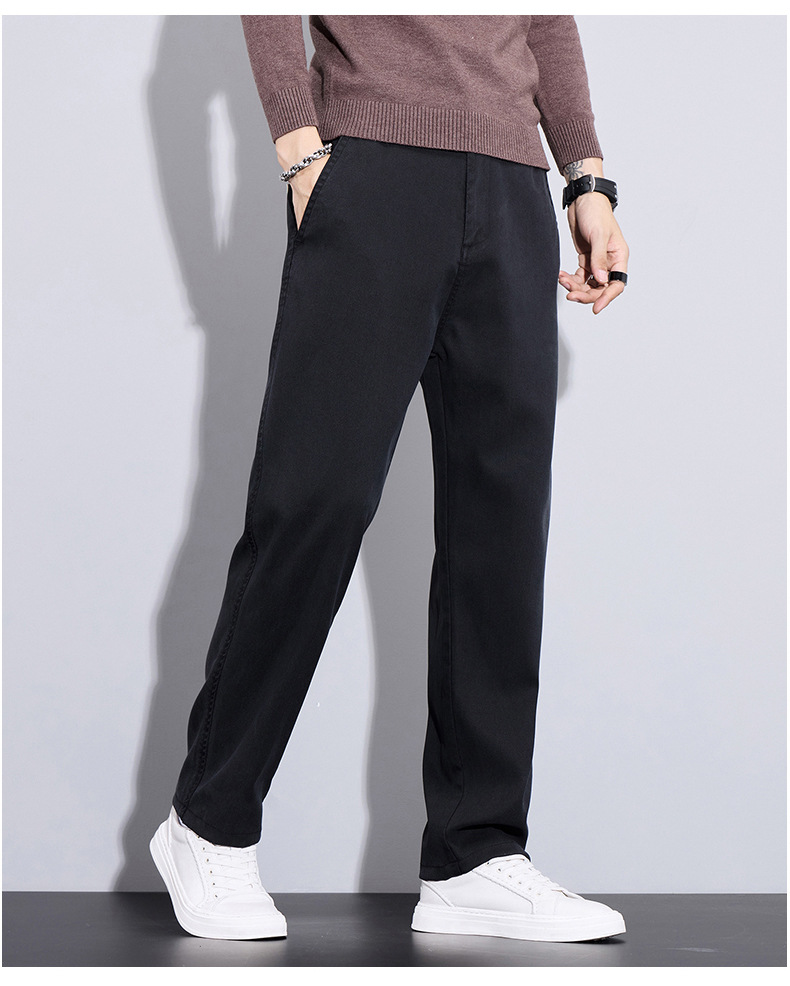 2024 가을/겨울 기모 넓은 다리 사업 캐주얼 바지 남성용 올매치 스트레이트 바지 스트레치 트렌디 브랜드 바지스토어 가기
