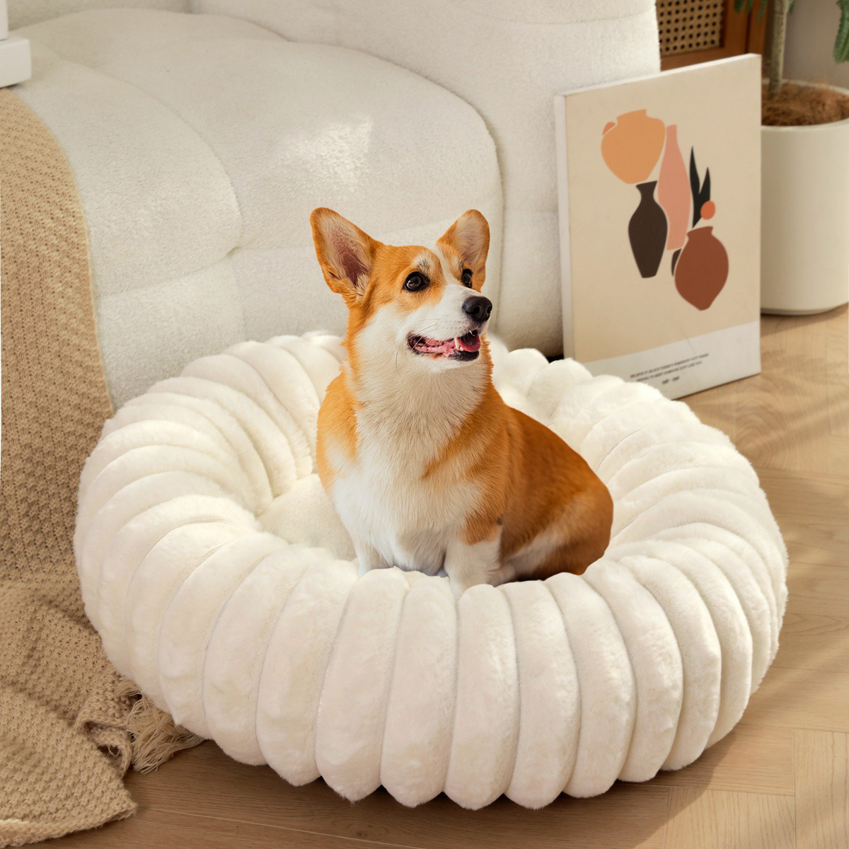 새로운 애완 동물 둥지 높은 무게 스트레이트 토끼 봉제 애완 동물 패드 긴 머리 둥근 고양이 둥지 겨울 따뜻한 개 침대 개 사육장스토어 가기