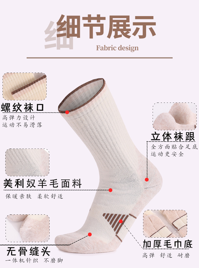 두꺼운 미드 배럴 스포츠 양말 미끄럼 통기성 수건 바닥 하이킹 등산 양말 따뜻한 메리노 울 양말 남성과 여성