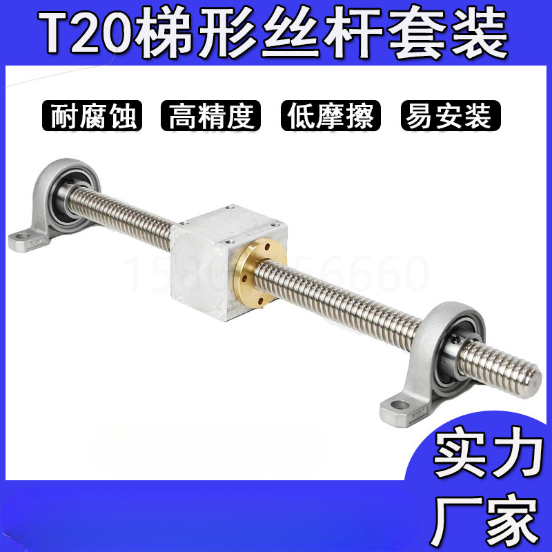 T-와이어로드 T20 핸드 스크류로드 스테인레스 스틸 3D 프린터 액세서리 사다리꼴 스레드 너트 세트 직경 20MM