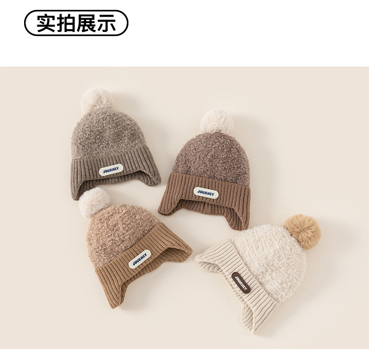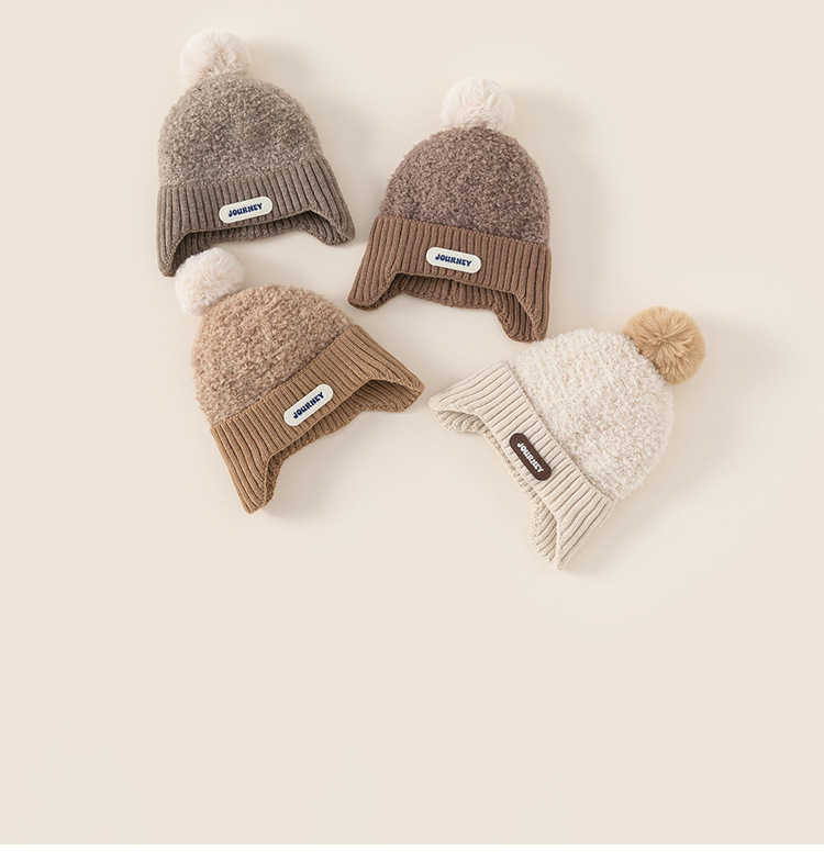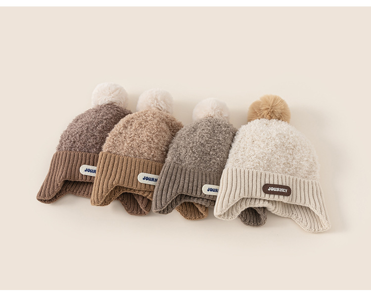 봉, 어린이 새 겨울모자 소년 '따뜻한 모피 공 니트 모자 여아 이중 방풍 편지 귀 보호 모자' 선정