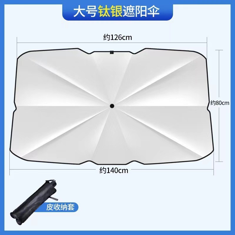 • [오픈 스타일] 티타늄 실버 중형 사이즈 약 130*70(UVA 99% 방지를 위해 두꺼워짐) 가죽 케이스 포함 [SUV/세단에 적합]