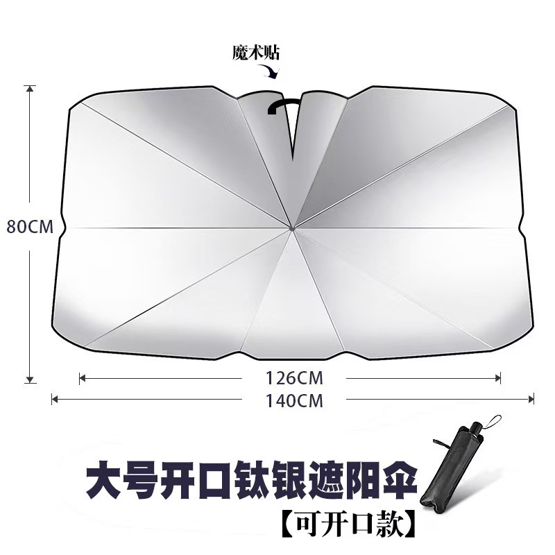 • [오픈 스타일] 티타늄 실버 대형 사이즈 약 140*79(UVA 99% 방지를 위해 두꺼워짐) 가죽 케이스 포함 [SUV/세단에 적합]