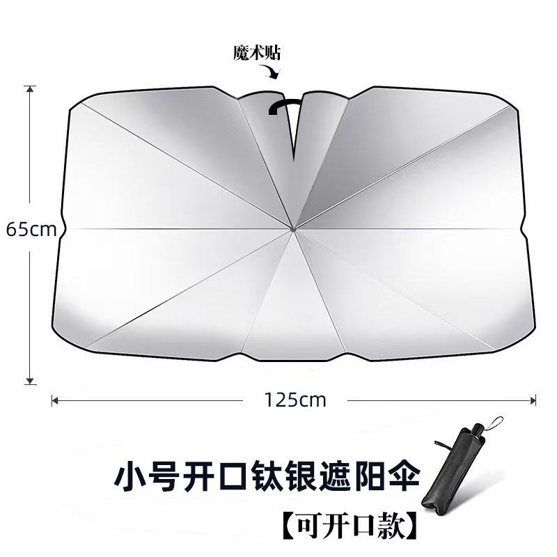 • [오픈 스타일] 티타늄 실버 소형 사이즈 약 125*65(UVA 99% 방지를 위해 두꺼워짐) 가죽 케이스 포함 [컴팩트/해치백에 적합]