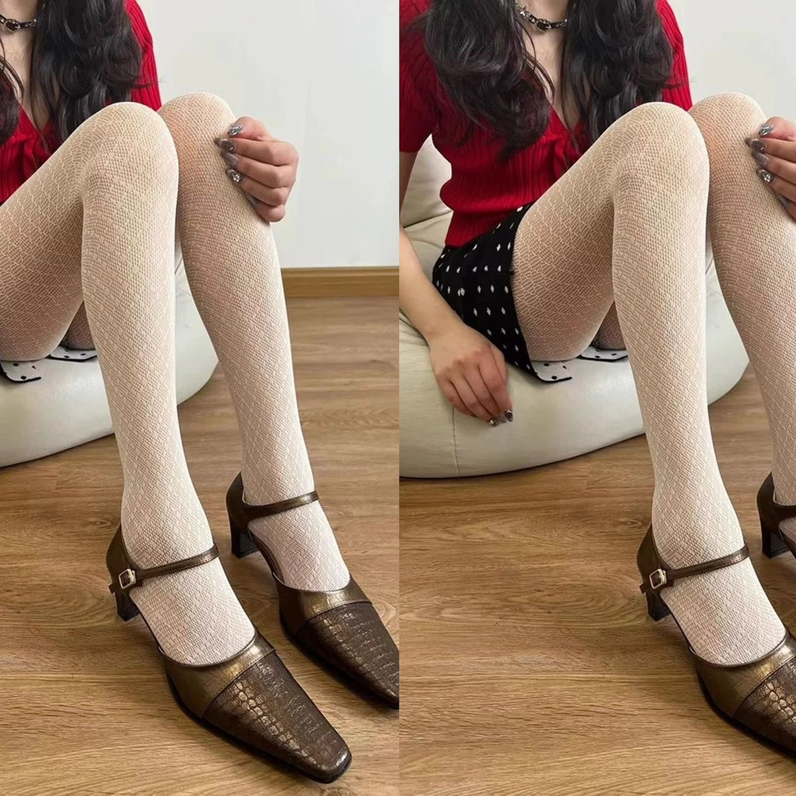 마름모 망사 스타킹 여성 섹시한 회색 검은 실크 y2k 밀레 니얼 핫 여자 달콤한 시원한 그리드 스타킹 회색 팬티 스타킹
