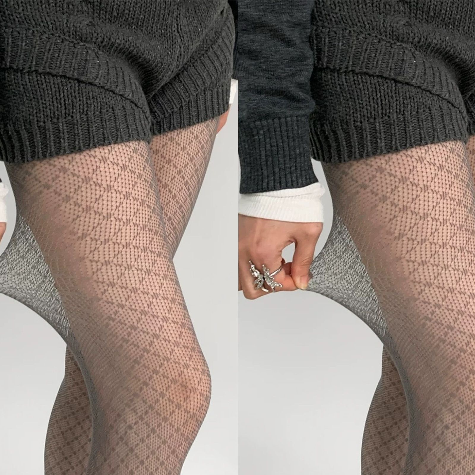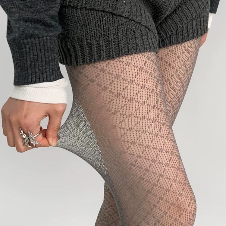 마름모 망사 스타킹 여성 섹시한 회색 검은 실크 y2k 밀레 니얼 핫 여자 달콤한 시원한 그리드 스타킹 회색 팬티 스타킹스토어 가기