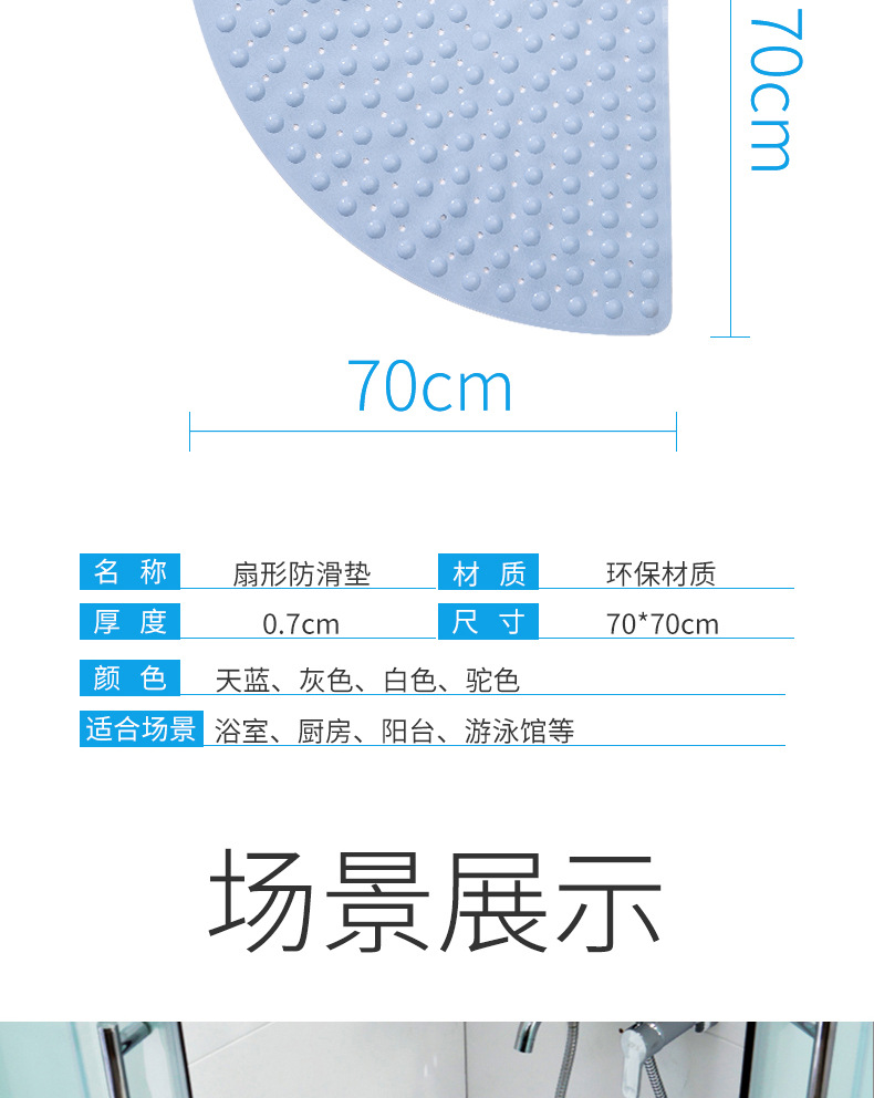 환경 보호 두꺼운 샤워 실 욕실 팬 모양의 미끄럼 방지 매트 삼각형 샤워 실 샤워 실 아크 모양의 낙하 방지 매트스토어 가기