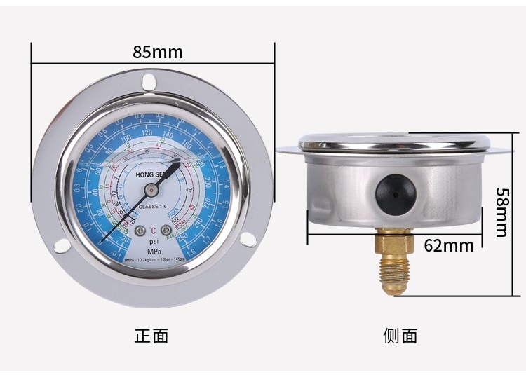 HS-OG-1.8L/3.8H 저온 저장 장치 오일 게이지 높고 낮은 압력 오일 충전 압력 게이지 축 R410AR22스토어 가기