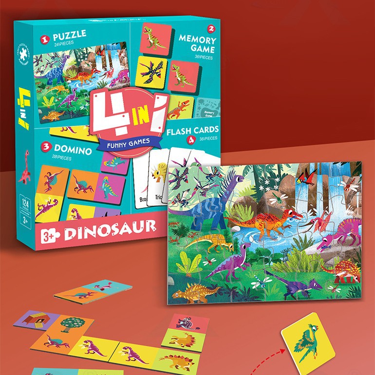 숲 4 대 1 직소 퍼즐 어린이 교육적인지 장난감 조립 동물 아기 선물 상자 세트스토어 가기