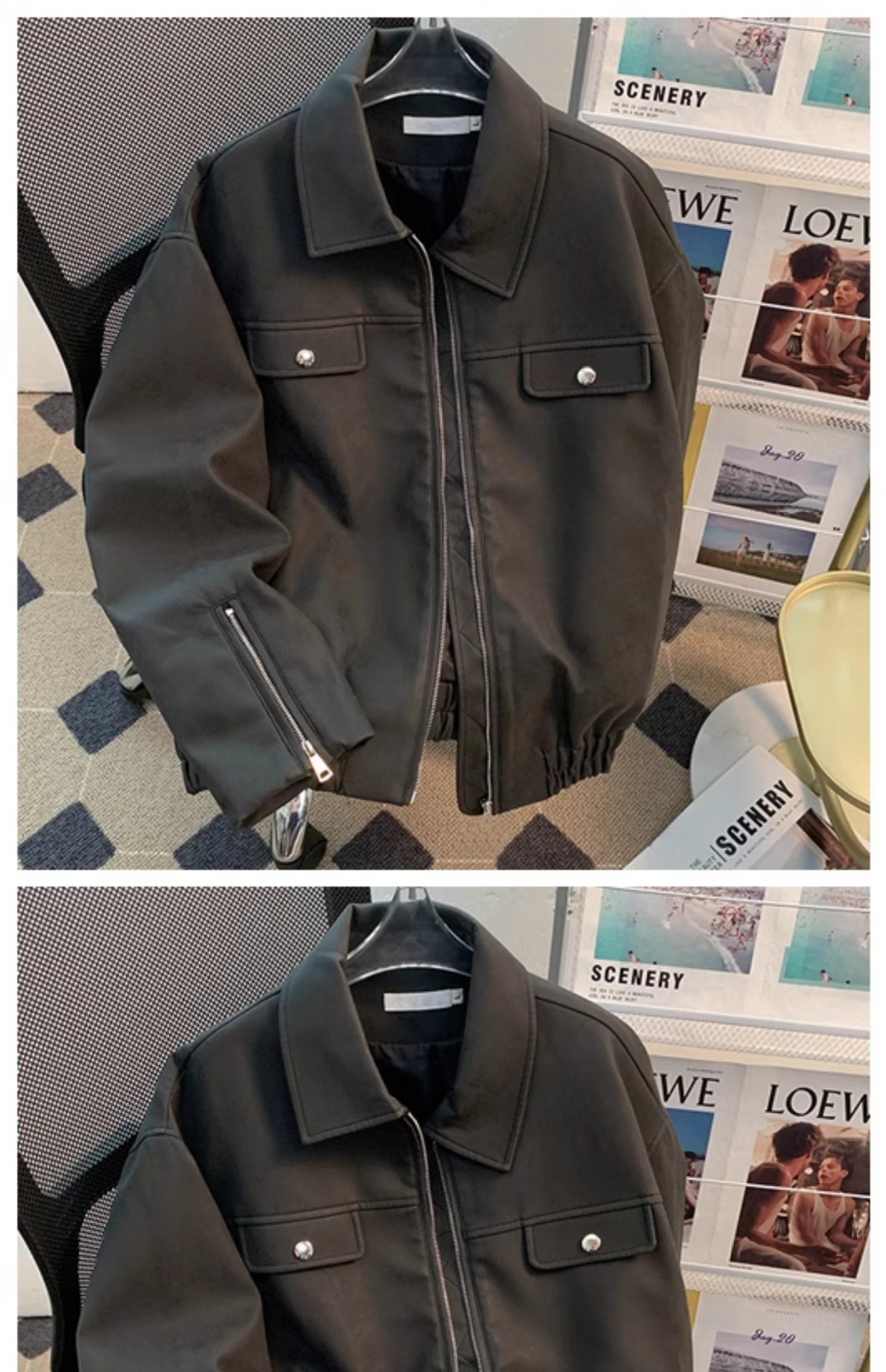 Maillard 다크 브라운 가죽 자켓 남성용 아메리칸 스타일 레트로 스트리트 프라이드 디자인 센스 지퍼 느슨한 오토바이 느슨한 가죽 자켓스토어 가기