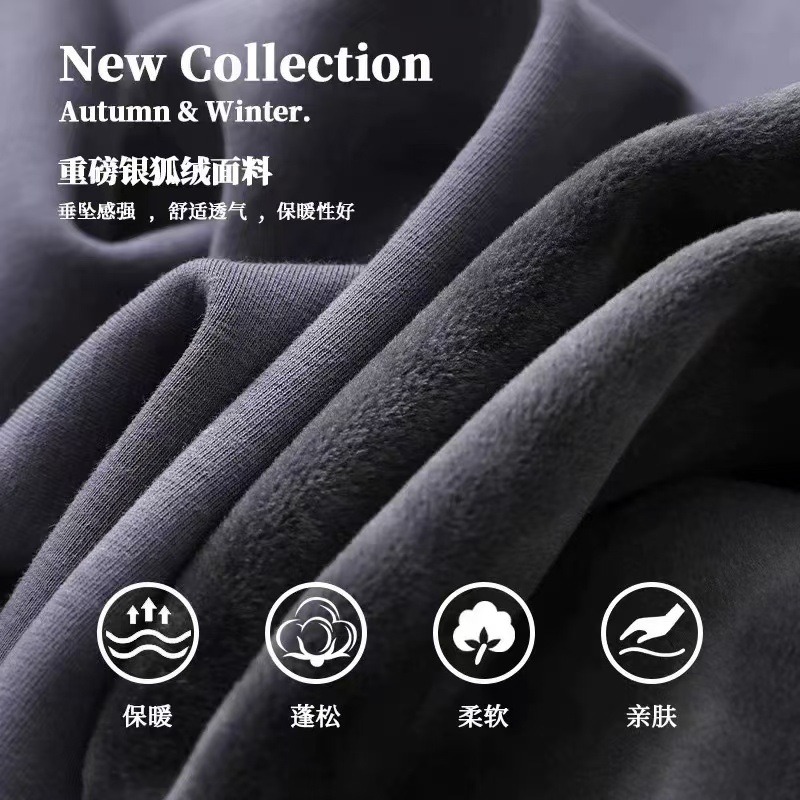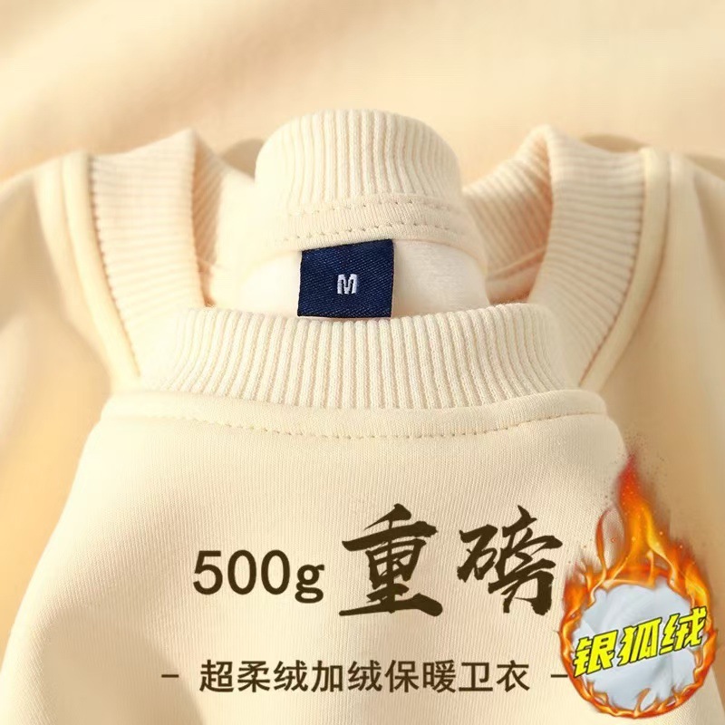 베이비 벨벳 500g 헤비급 스웨터 남성용 기모 두껍게 된 슈퍼 소프트 벨벳 크루 넥 느슨한 단색 겉옷 가을과 겨울 바닥 셔츠