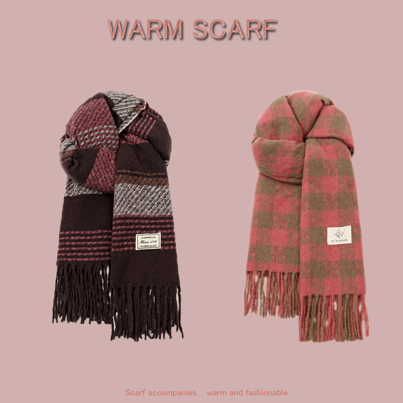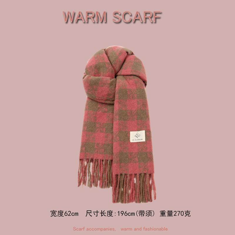 Xinghe Dot 컬러 설탕 콩 한국 격자 무늬 캐시미어 분위기 스카프 가을 및 겨울 학생 소녀 시리즈