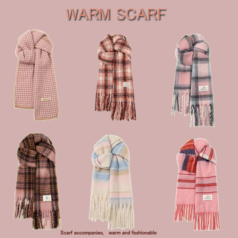 Xinghe Dot 컬러 설탕 콩 한국 격자 무늬 캐시미어 분위기 스카프 가을 및 겨울 학생 소녀 시리즈스토어 가기