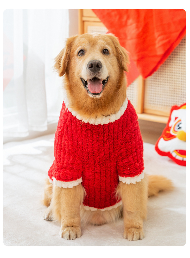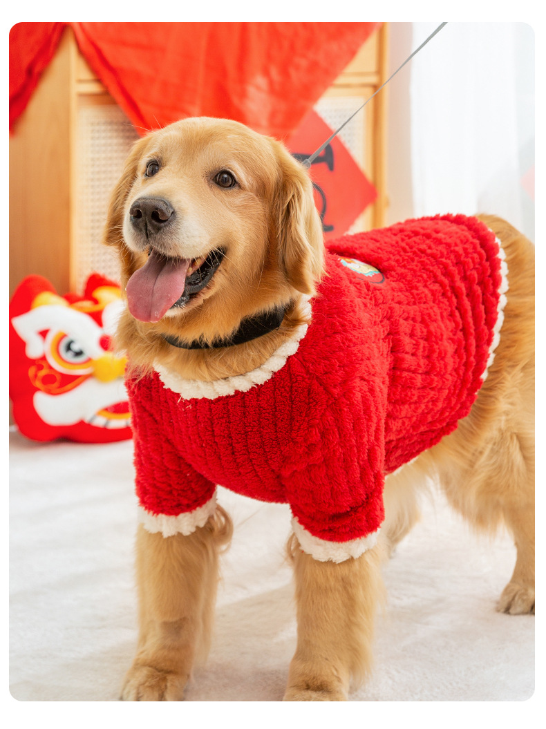 골든 리트리버 국경 축산 중형 및 대형 개 신년 개 옷 축제 신년 인사말 가을과 겨울 두 다리 양털 애완견 의류스토어 가기