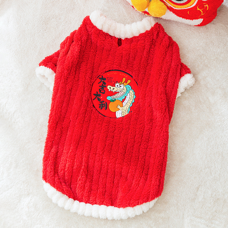 골든 리트리버 국경 축산 중형 및 대형 개 신년 개 옷 축제 신년 인사말 가을과 겨울 두 다리 양털 애완견 의류