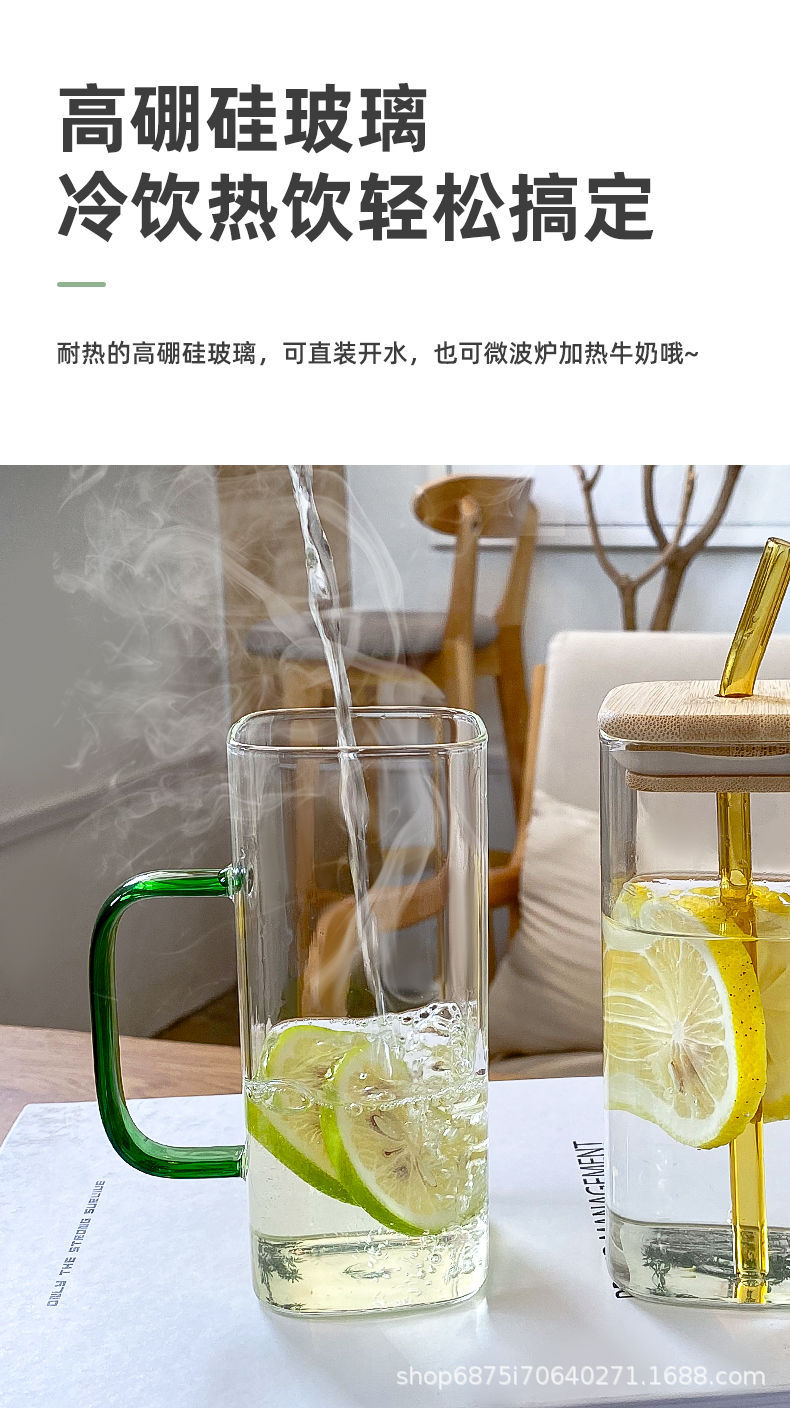 • 대나무 뚜껑이 달린 녹색 사각형 컵과 빨대