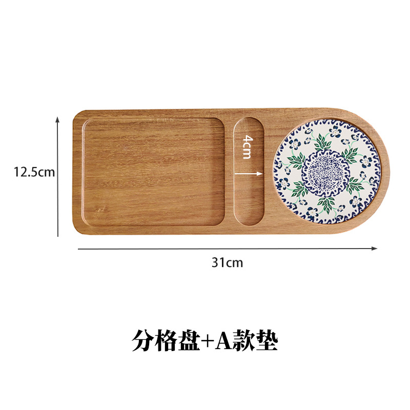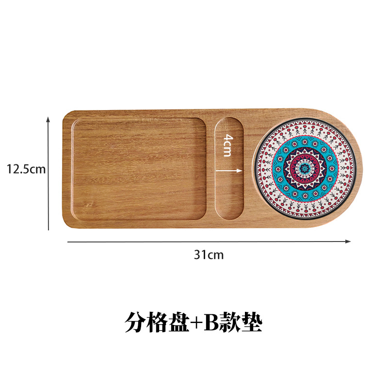 한 사람이 단단한 나무 구획 트레이 오후 티 플레이트 컵 플레이트 디저트 작은 티 트레이 간단한 디너 플레이트를 사용합니다.스토어 가기