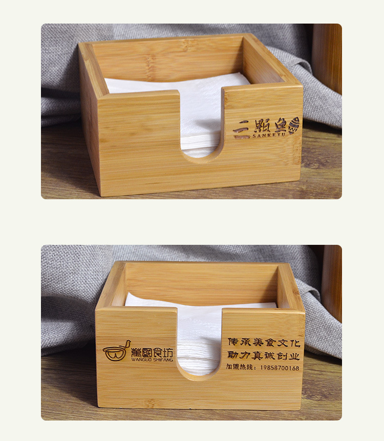 호텔 레스토랑 상업 사각형 티슈 박스 티슈 랙 로고 대나무 냄비 가게 창조적 인 저장 상자스토어 가기