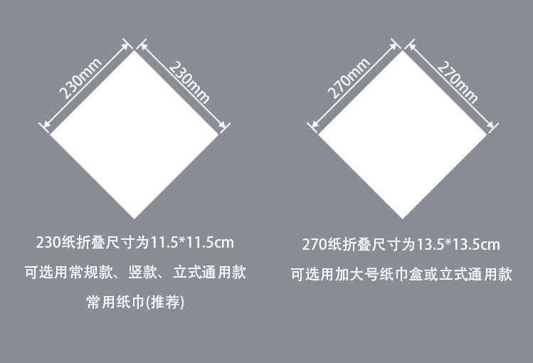 常规款:适用23*23cm(折叠后11.5*11.5cm)的纸张。