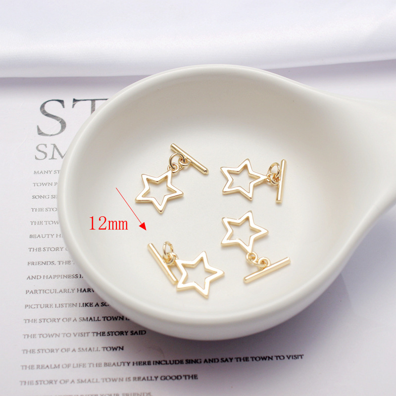 14K 골드 골드 IQ 버클 Ot 버클 부드러운 복숭아 심장 다섯개 별 라운드 활 DIY 팔찌 목걸이 보석스토어 가기