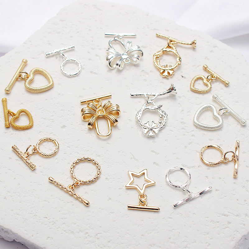14K包金哑金IQ扣OT扣光面桃心五角星圆形蝴蝶结DIY手链项链饰品