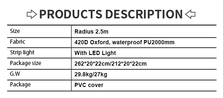 • 360 ° 부채꼴 자동차 사이드 텐트(반경 2.5m)