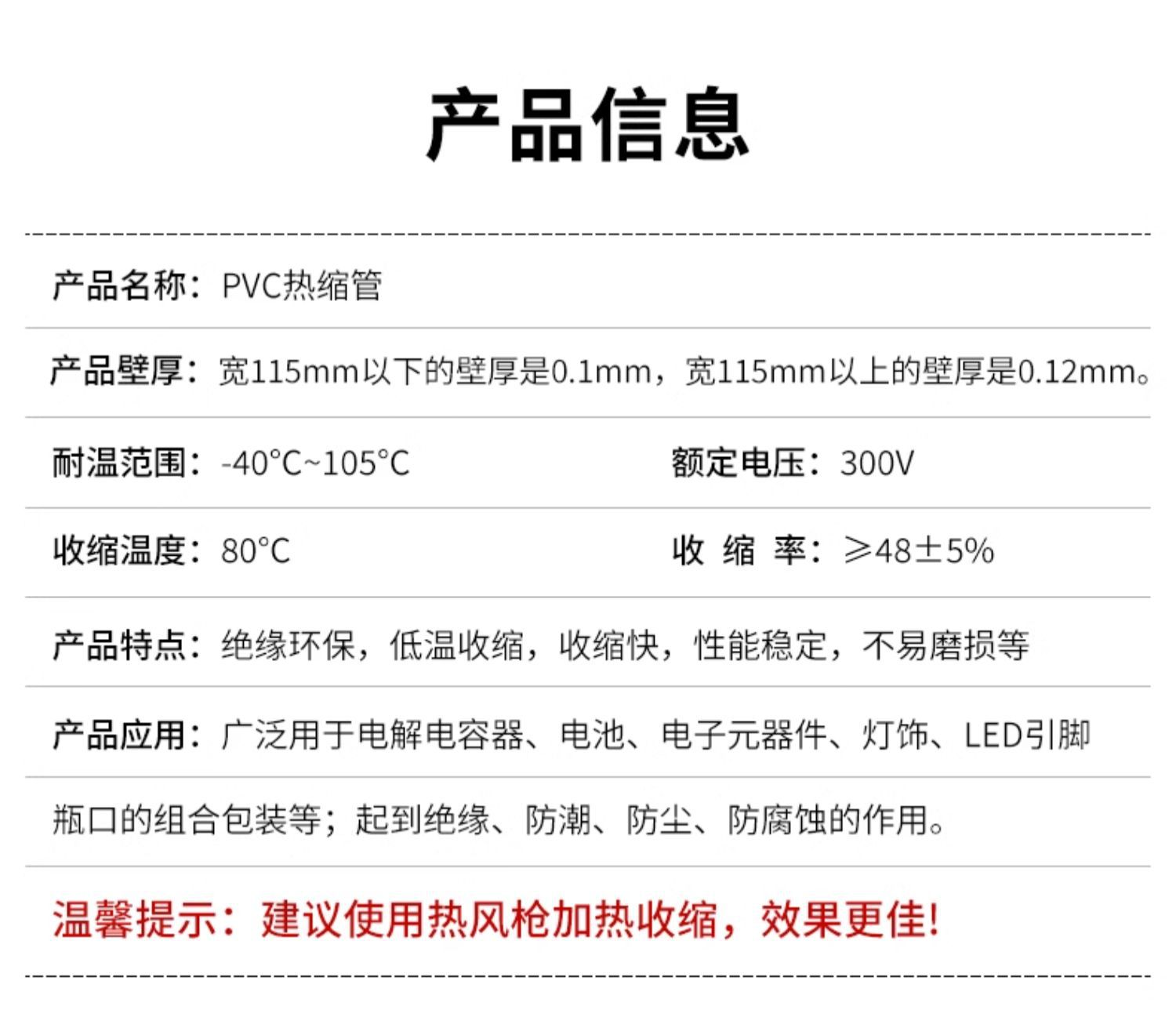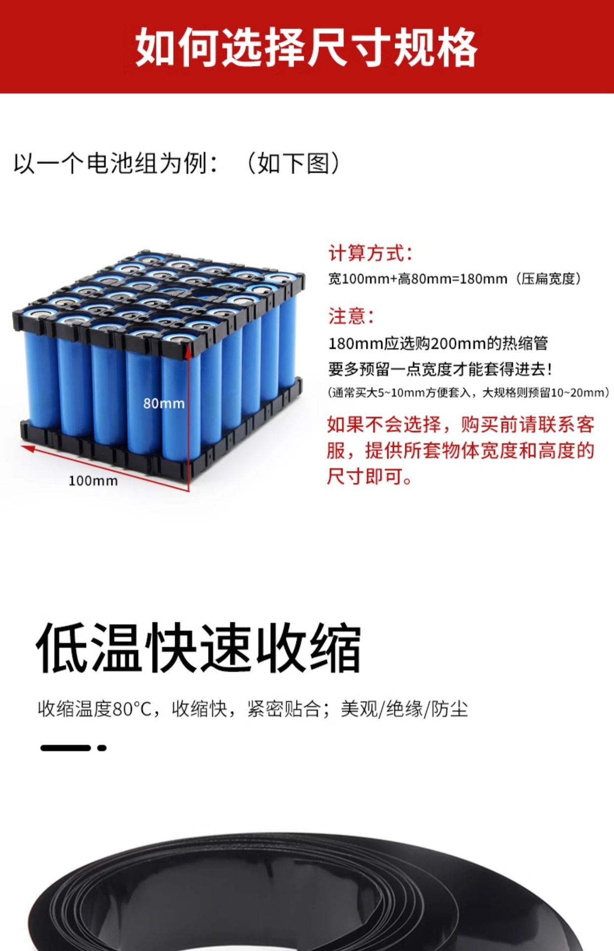 블랙 PVC 열 수축 튜브 18650 배터리 팩 보호 플라스틱 필름 7-500mm 포장 필름 절연 난연 열 수축 슬리브