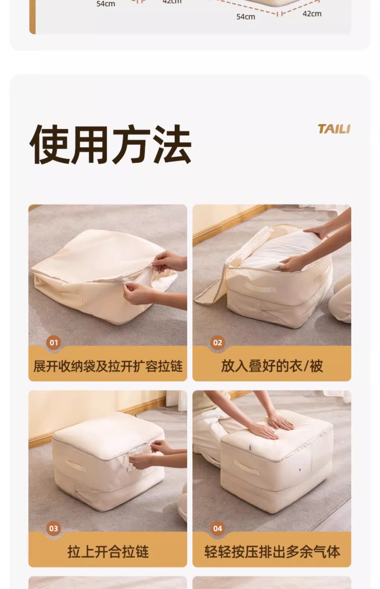 • 오프화이트 [꽉 차있어 부러지지 않음 | 당기지 않음] 대형 54*42*30cm [이불 3kg개 수납 가능]