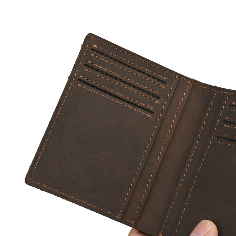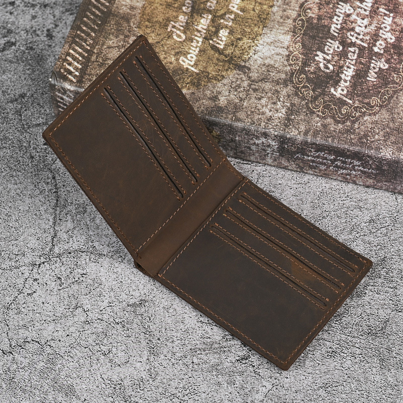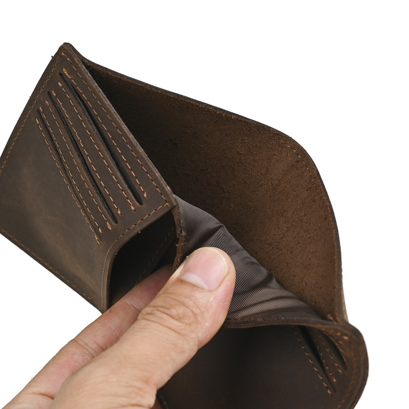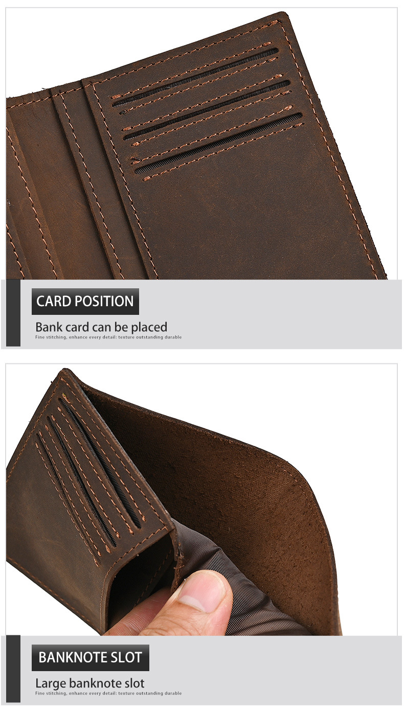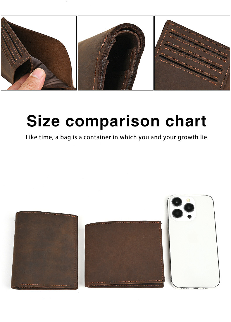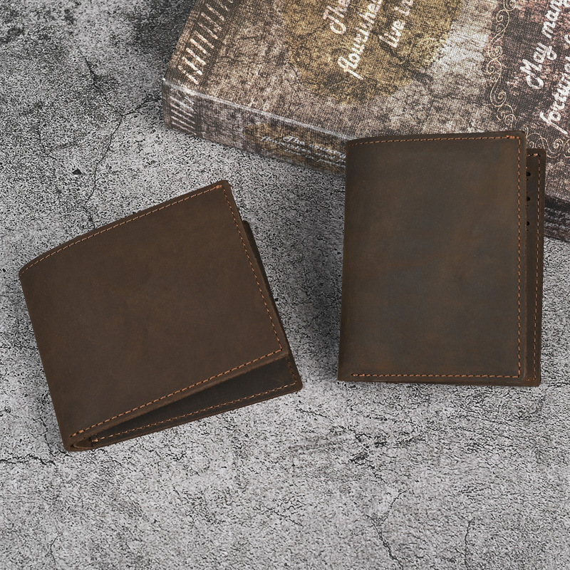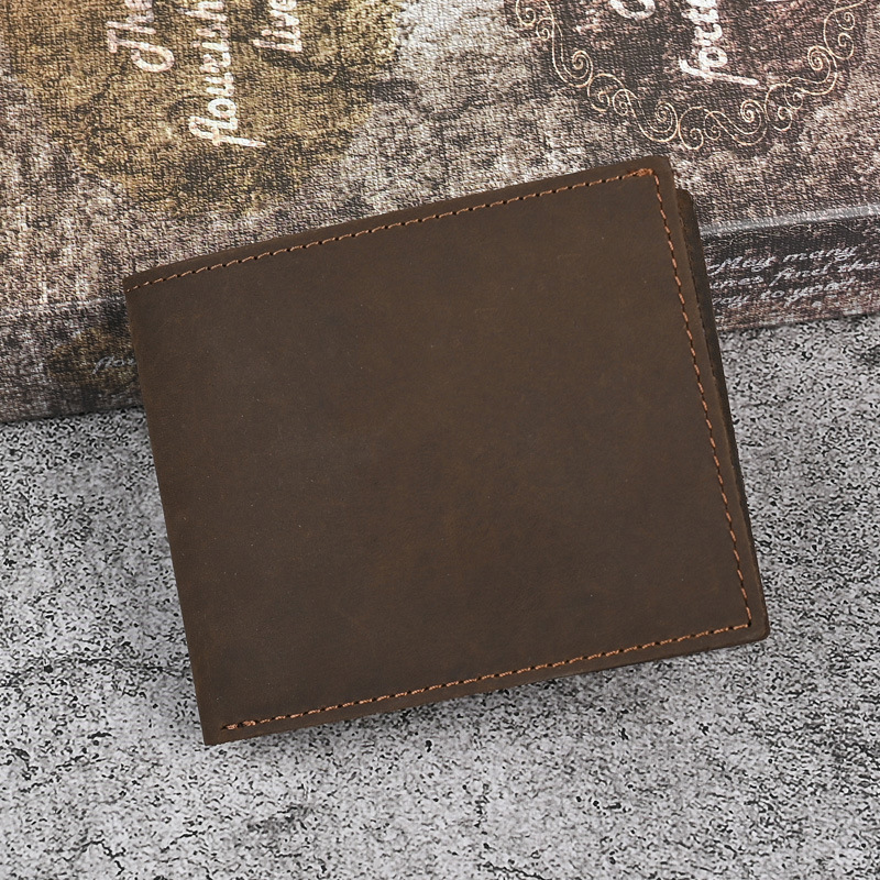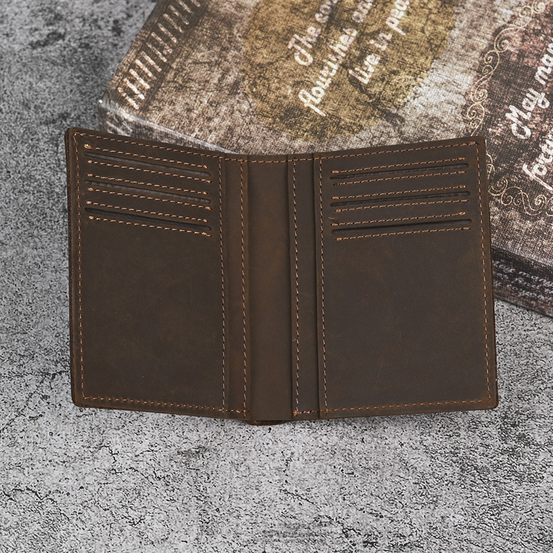 고대 트렌디 한 레트로 미친 말 가죽 지갑 간단한 모든 경기 정품 가죽 남성 지갑 레트로 트렌디 가로 및 세로 지갑