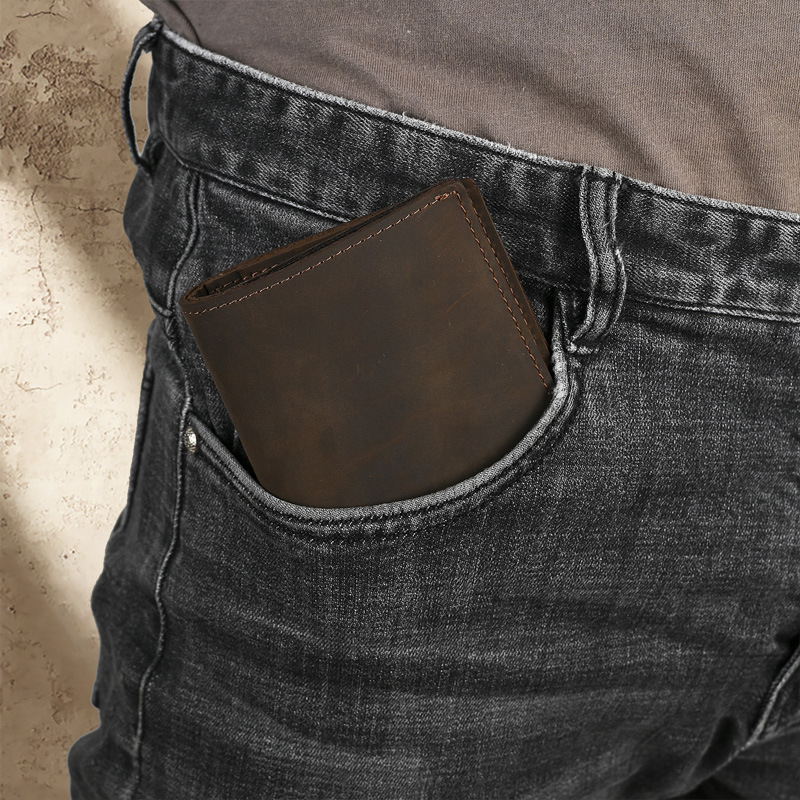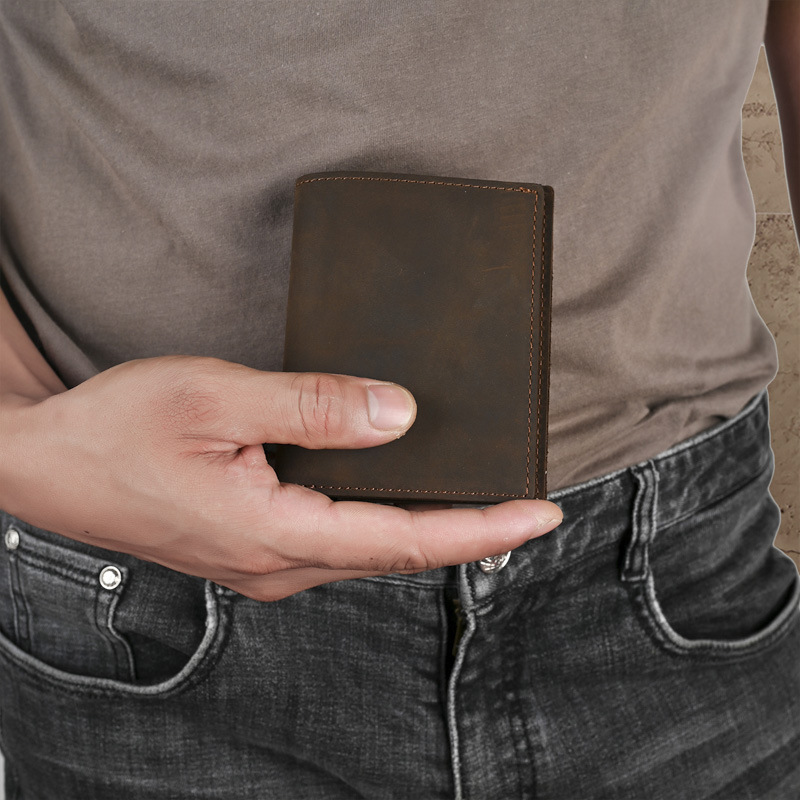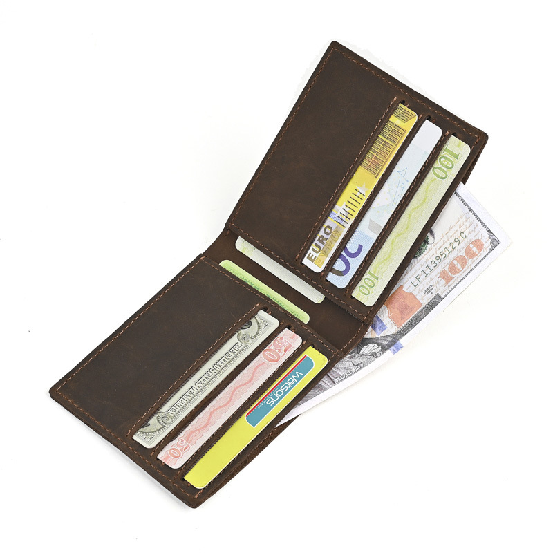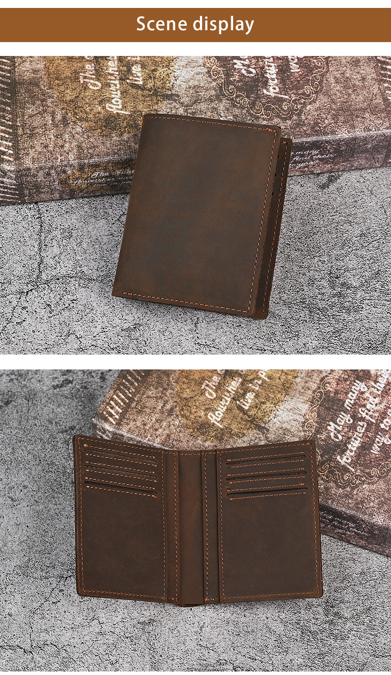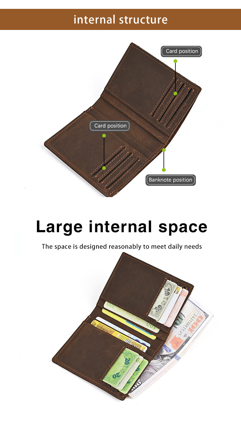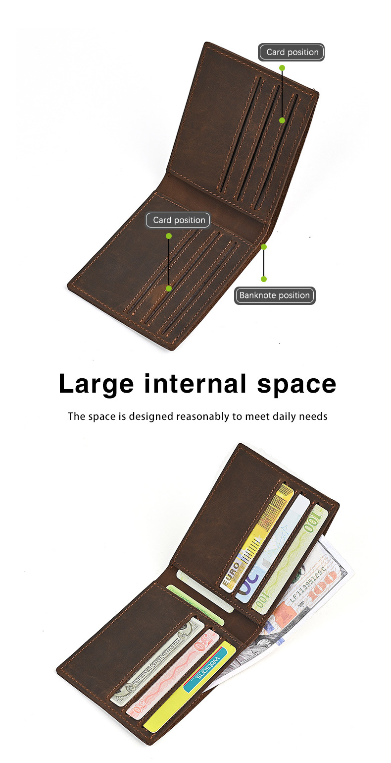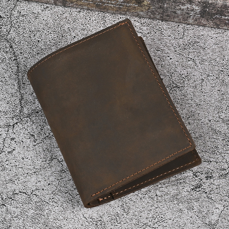 고대 트렌디 한 레트로 미친 말 가죽 지갑 간단한 모든 경기 정품 가죽 남성 지갑 레트로 트렌디 가로 및 세로 지갑