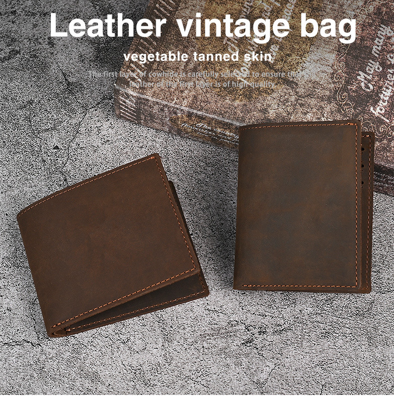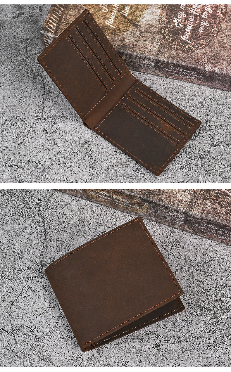 고대 트렌디 한 레트로 미친 말 가죽 지갑 간단한 모든 경기 정품 가죽 남성 지갑 레트로 트렌디 가로 및 세로 지갑스토어 가기