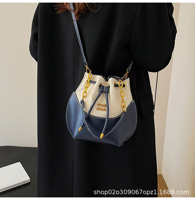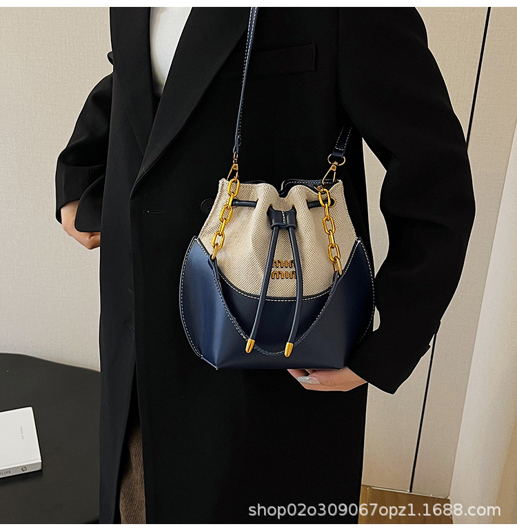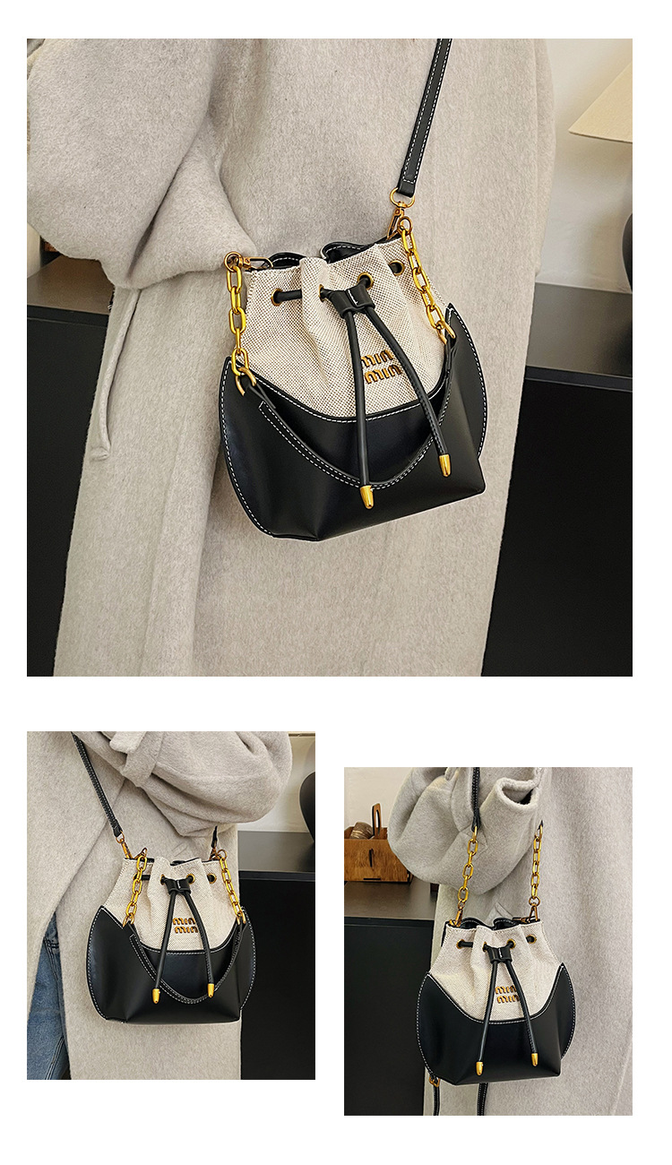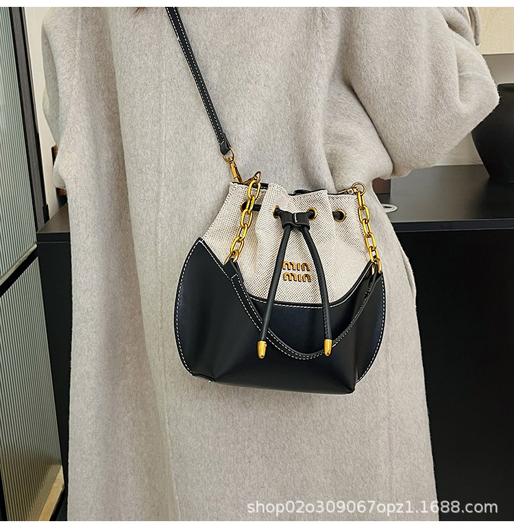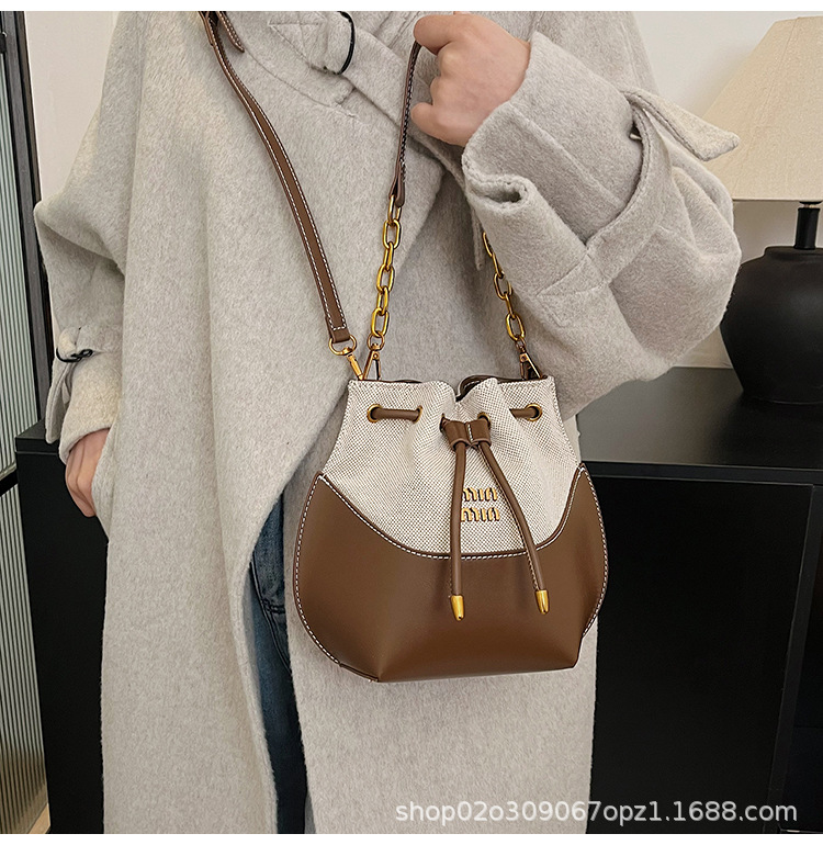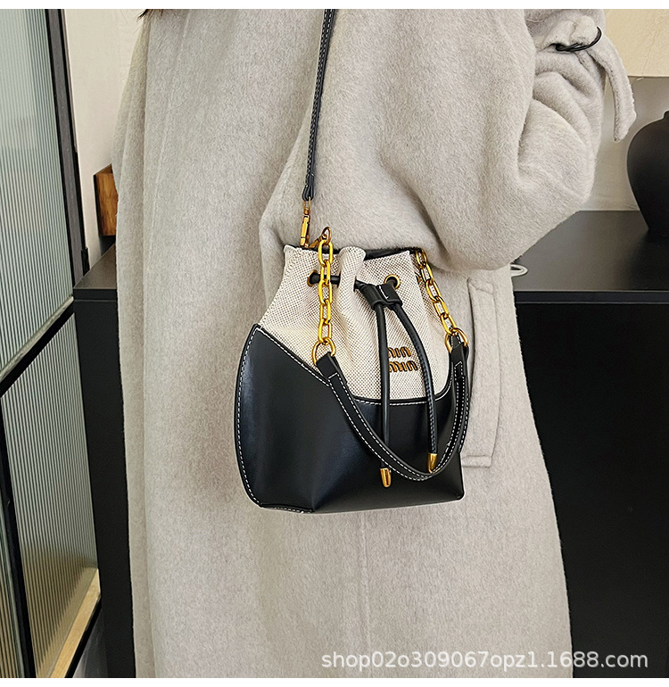 2024 국경 새로운 틈새 디자인 프랑스 핸드 버킷 가방 여성의 트렌디 한 캔버스 컬러 대비 어깨 크로스 바디 백