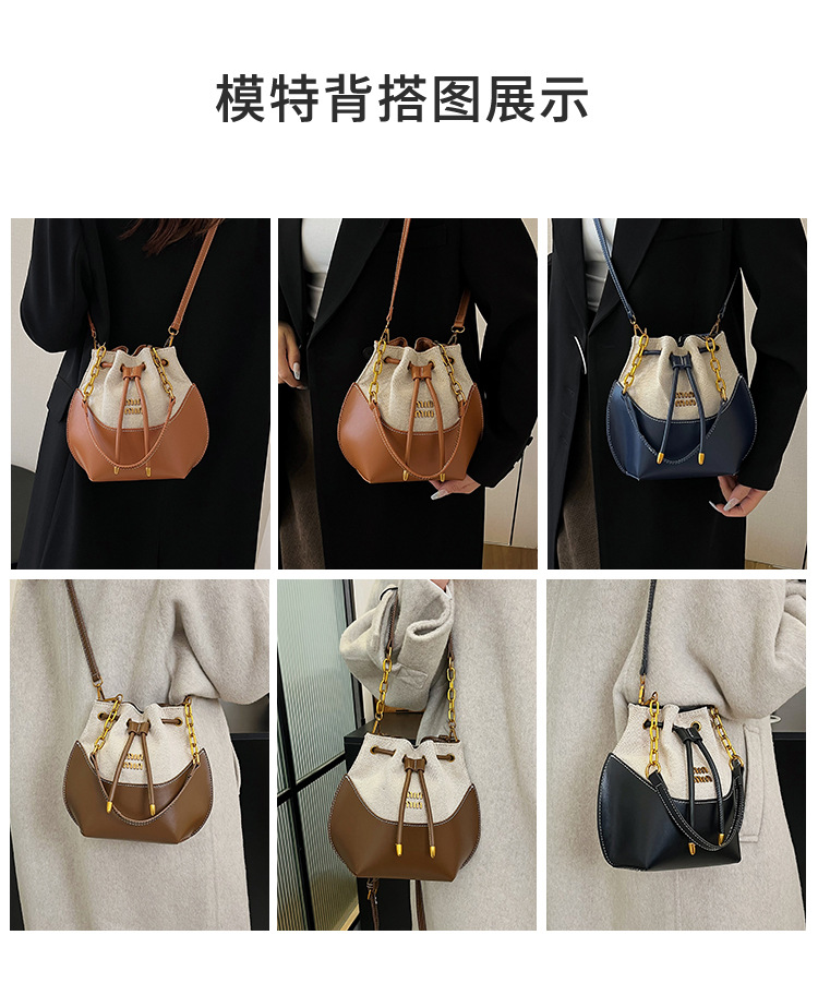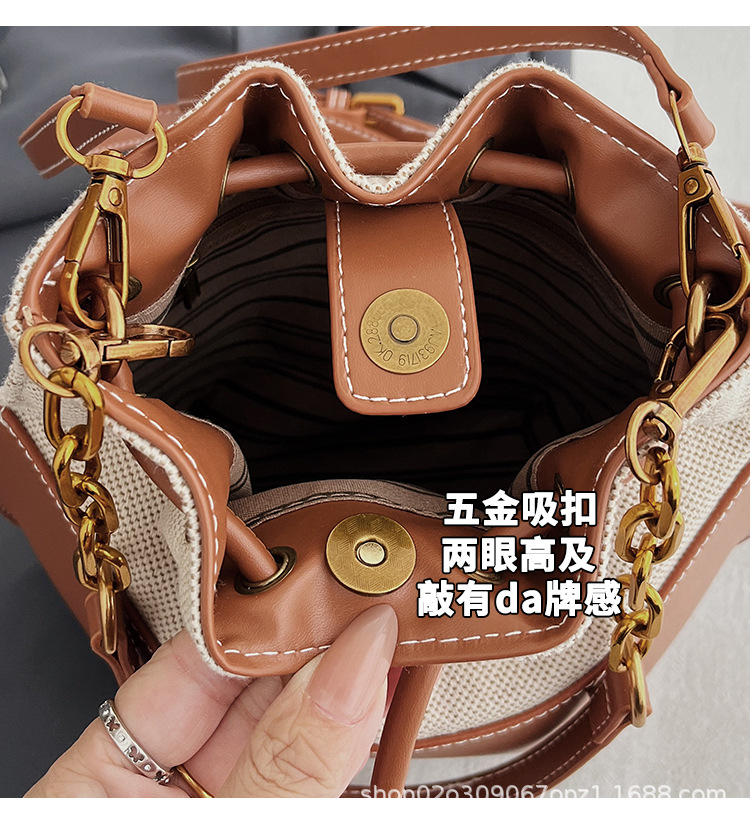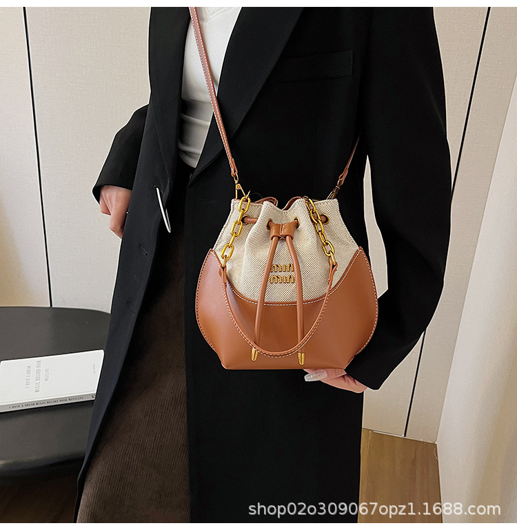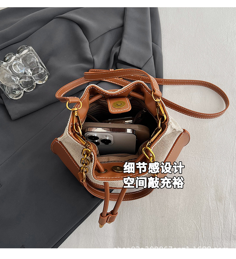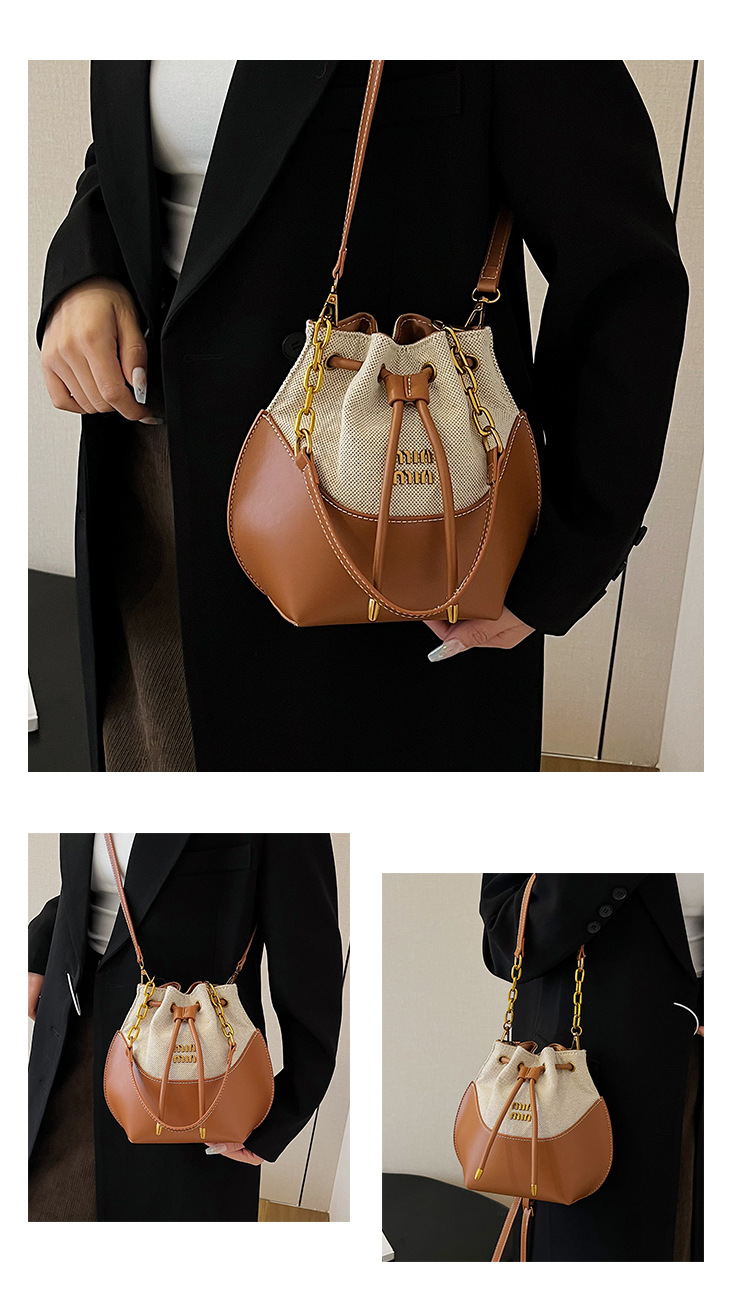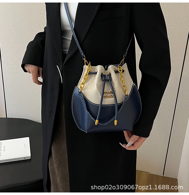 2024 국경 새로운 틈새 디자인 프랑스 핸드 버킷 가방 여성의 트렌디 한 캔버스 컬러 대비 어깨 크로스 바디 백