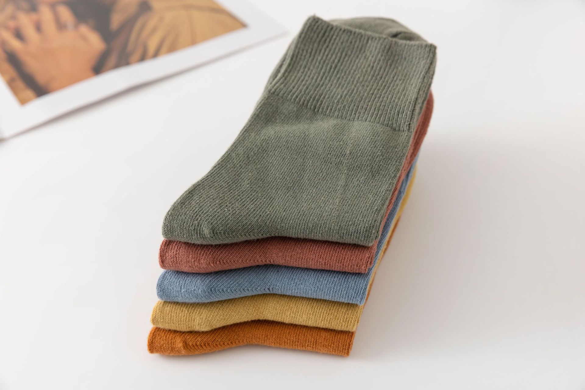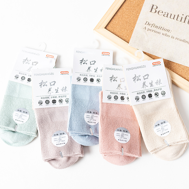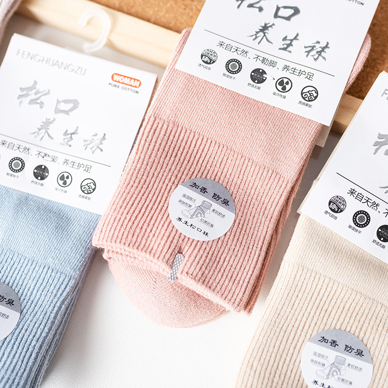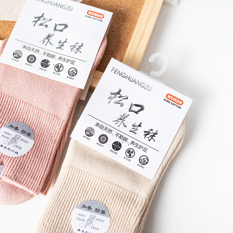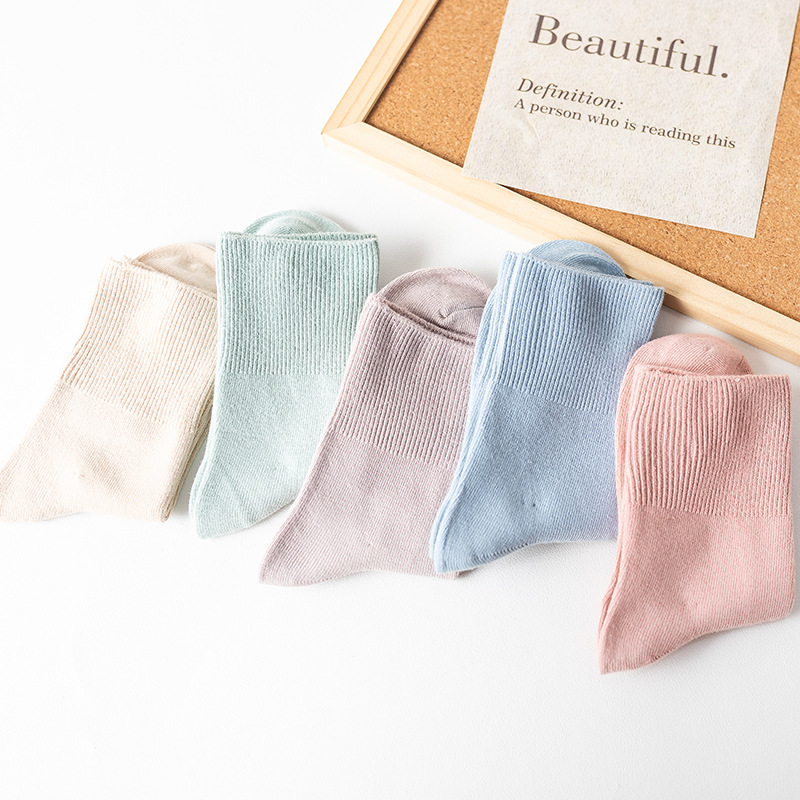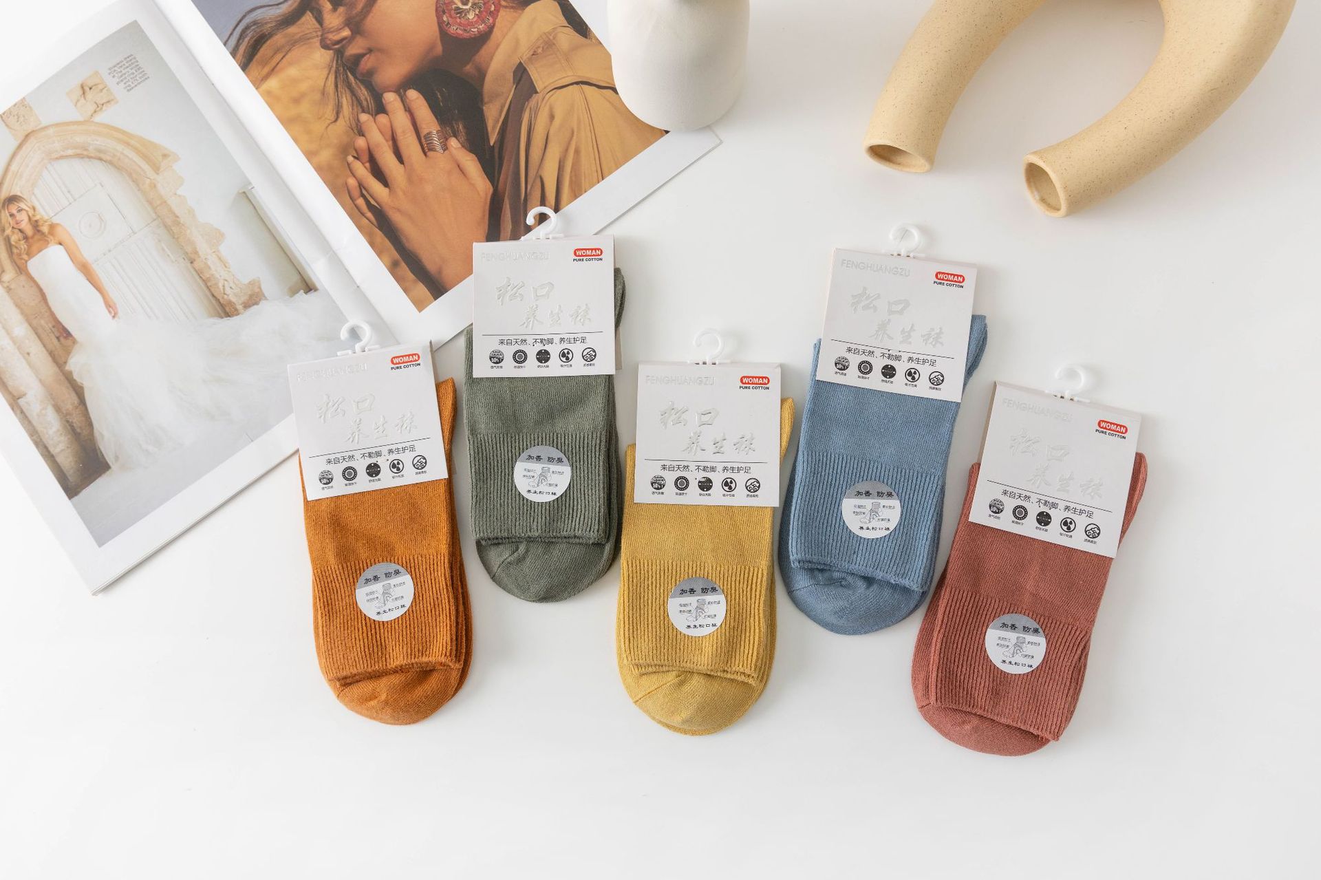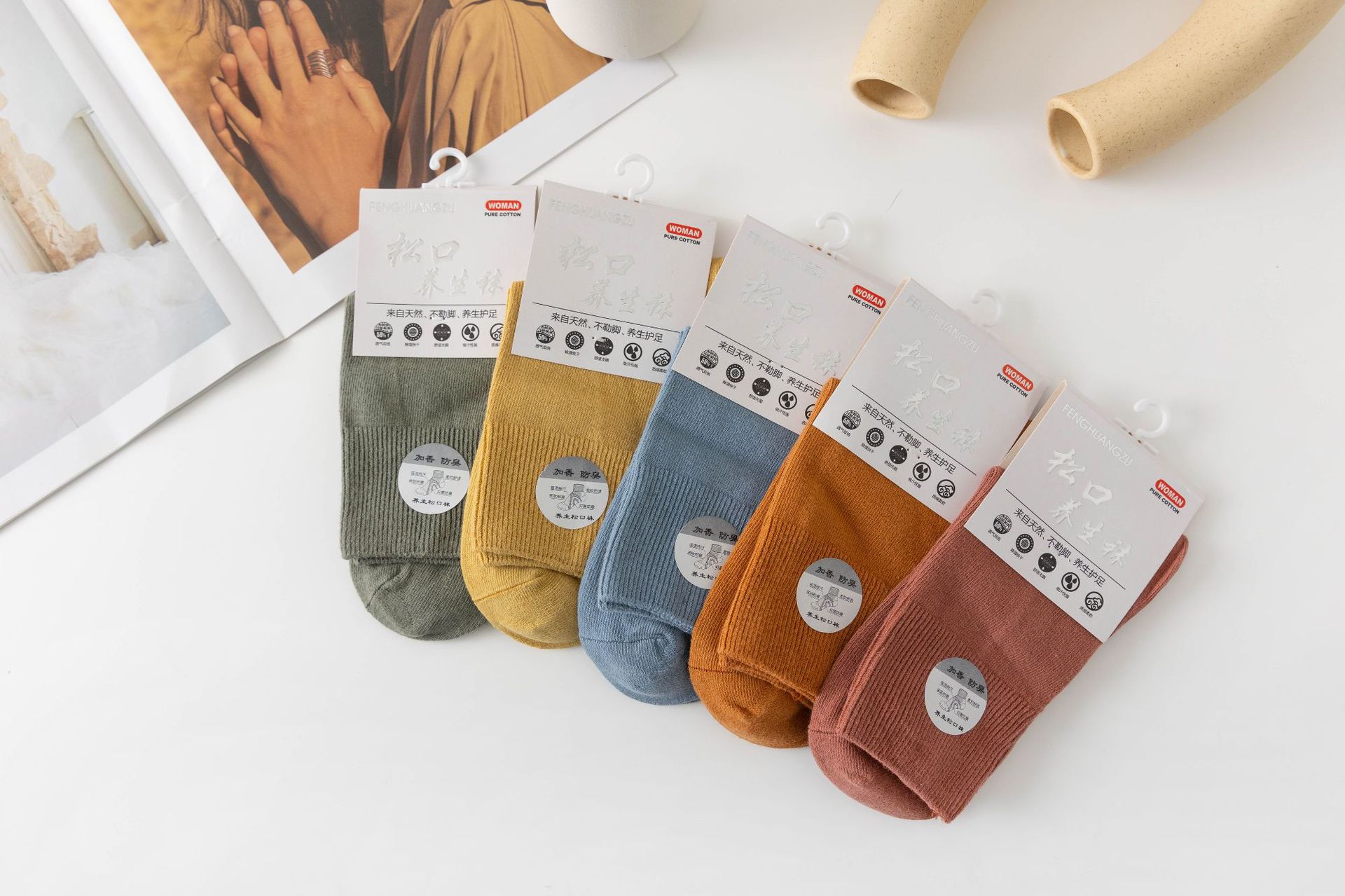 양말 여성의 가을과 겨울 두꺼운 느슨한 입 틸트 어머니 양말 솔리드 컬러 더블 니들 코튼 양말 흡수 냄새 방지 미드 튜브 양말스토어 가기