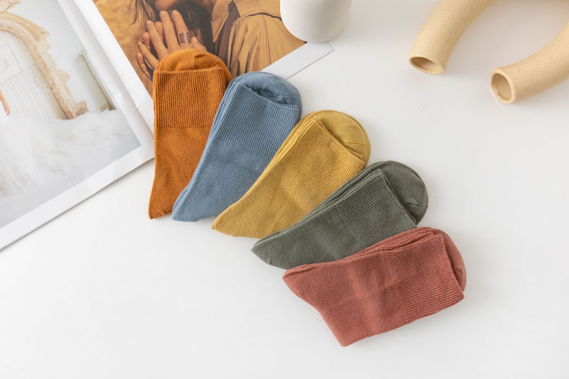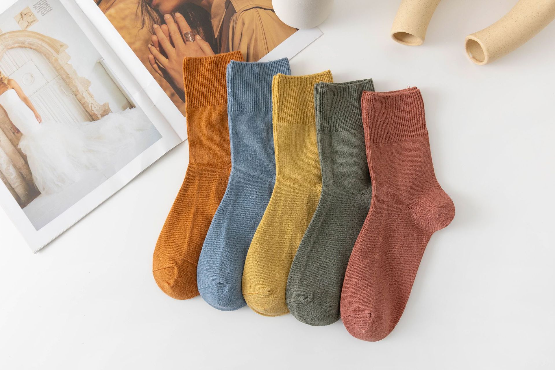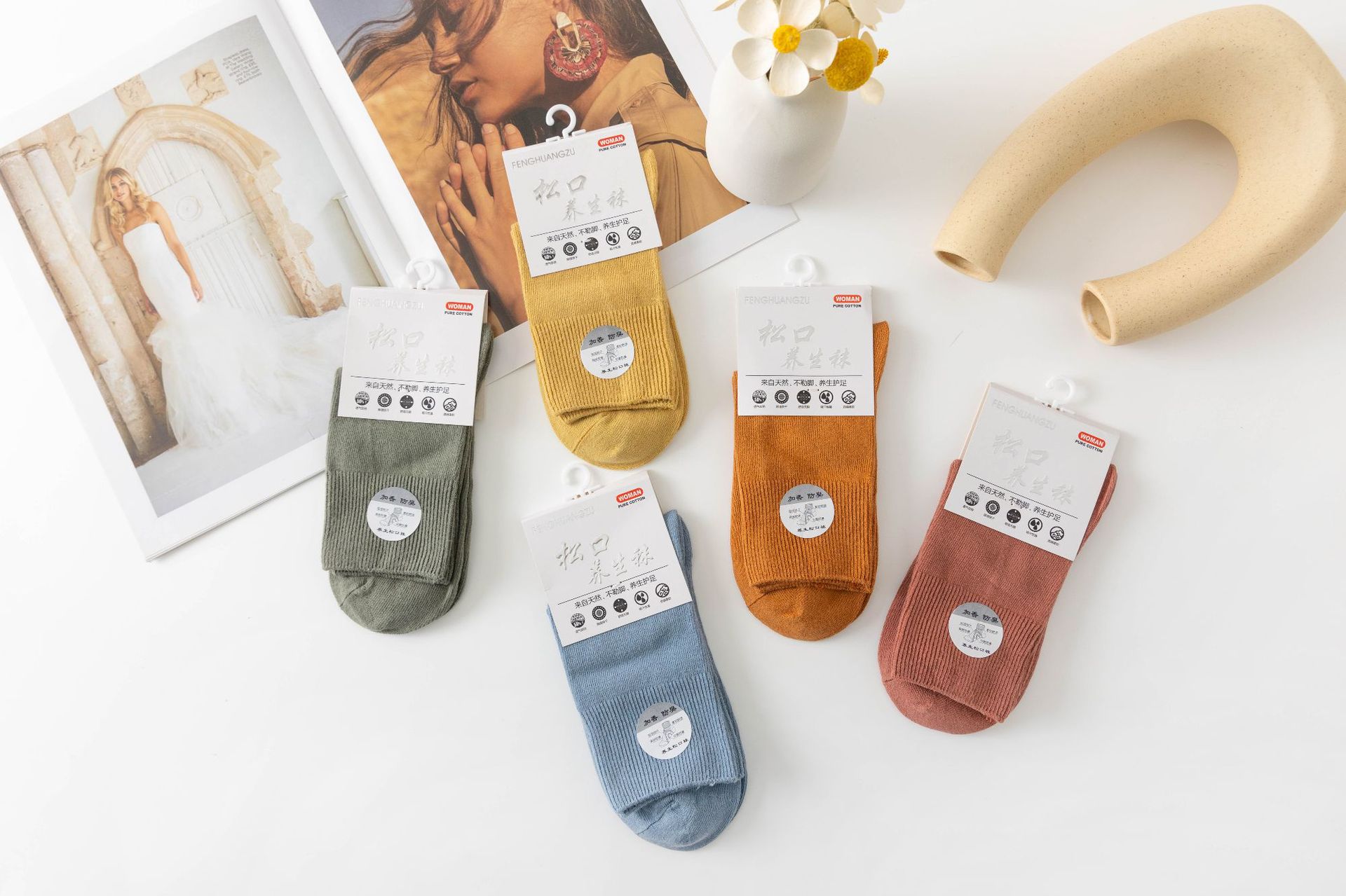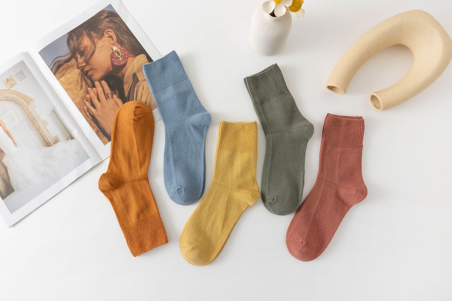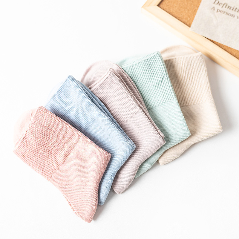 양말 여성의 가을과 겨울 두꺼운 느슨한 입 틸트 어머니 양말 솔리드 컬러 더블 니들 코튼 양말 흡수 냄새 방지 미드 튜브 양말스토어 가기