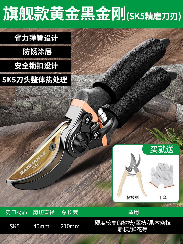• 플래그십 골드 블랙 킹콩(SK5 미세 샤프닝 블레이드) + 장갑 + 나뭇가지 가위
