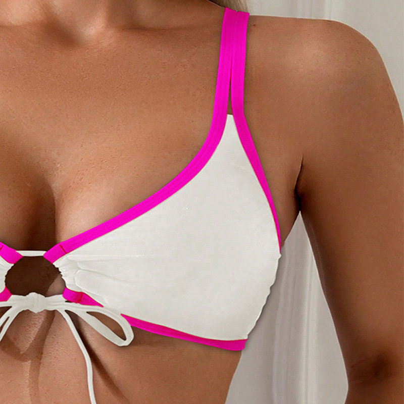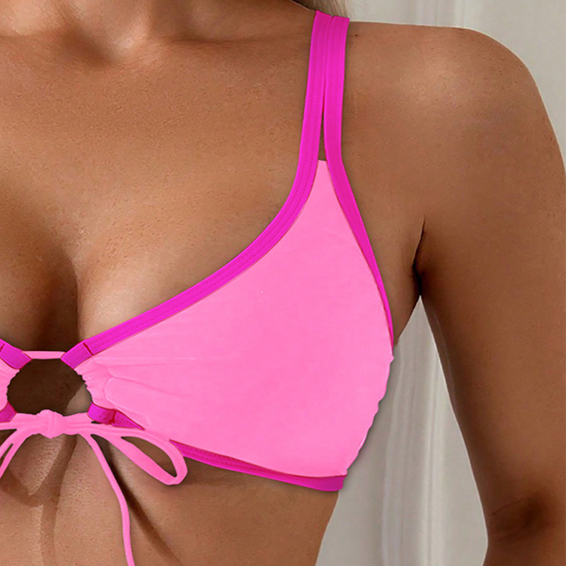 2024 새로운 아마존 유럽과 미국의 단색 레이스 업 섹시한 분할 수영복 여성 하이 엔드 비키니 비치 수영복
