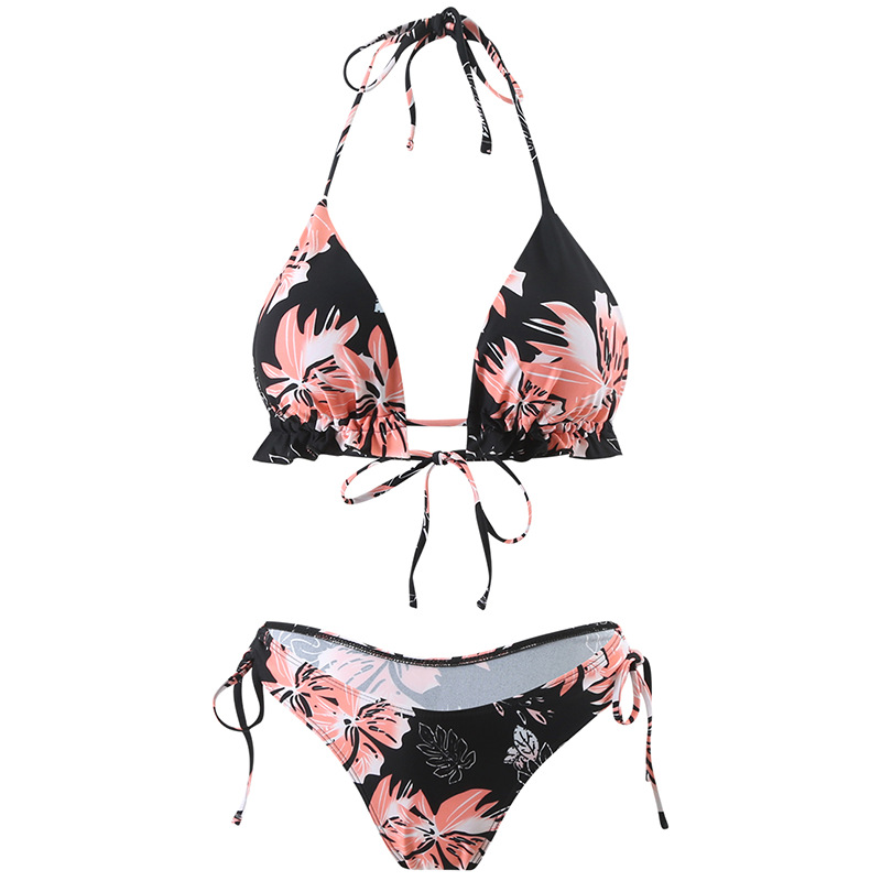 크로스보더 삼각형 비키니 디지털 프린트 스플릿 수영복 아마존 비키니 넥 스트랩 섹시 수영복
