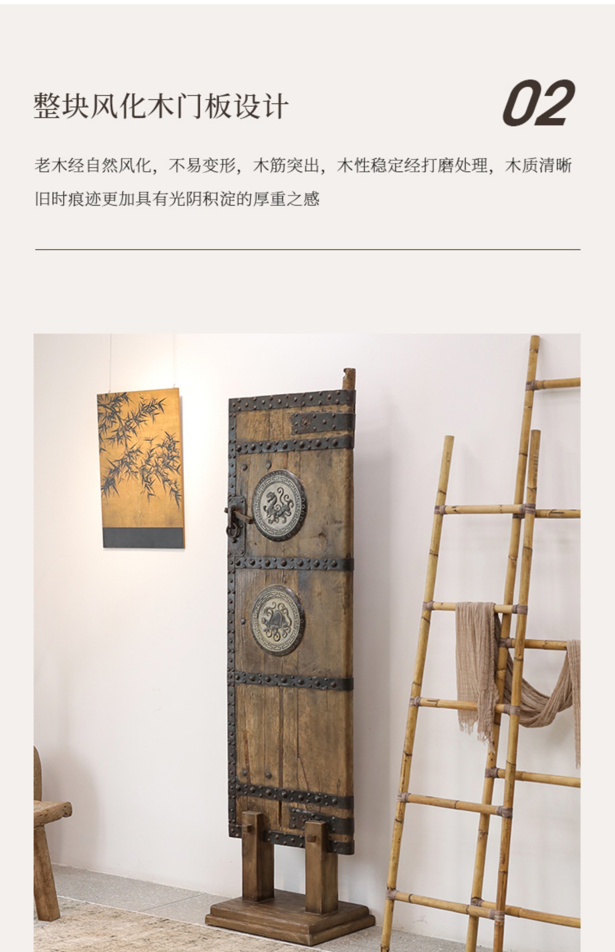 사일런트 바람 파티션 입구 화면 그늘 거실 배경 장식 오래된 느릅 나무 문 패널 오래된 개체