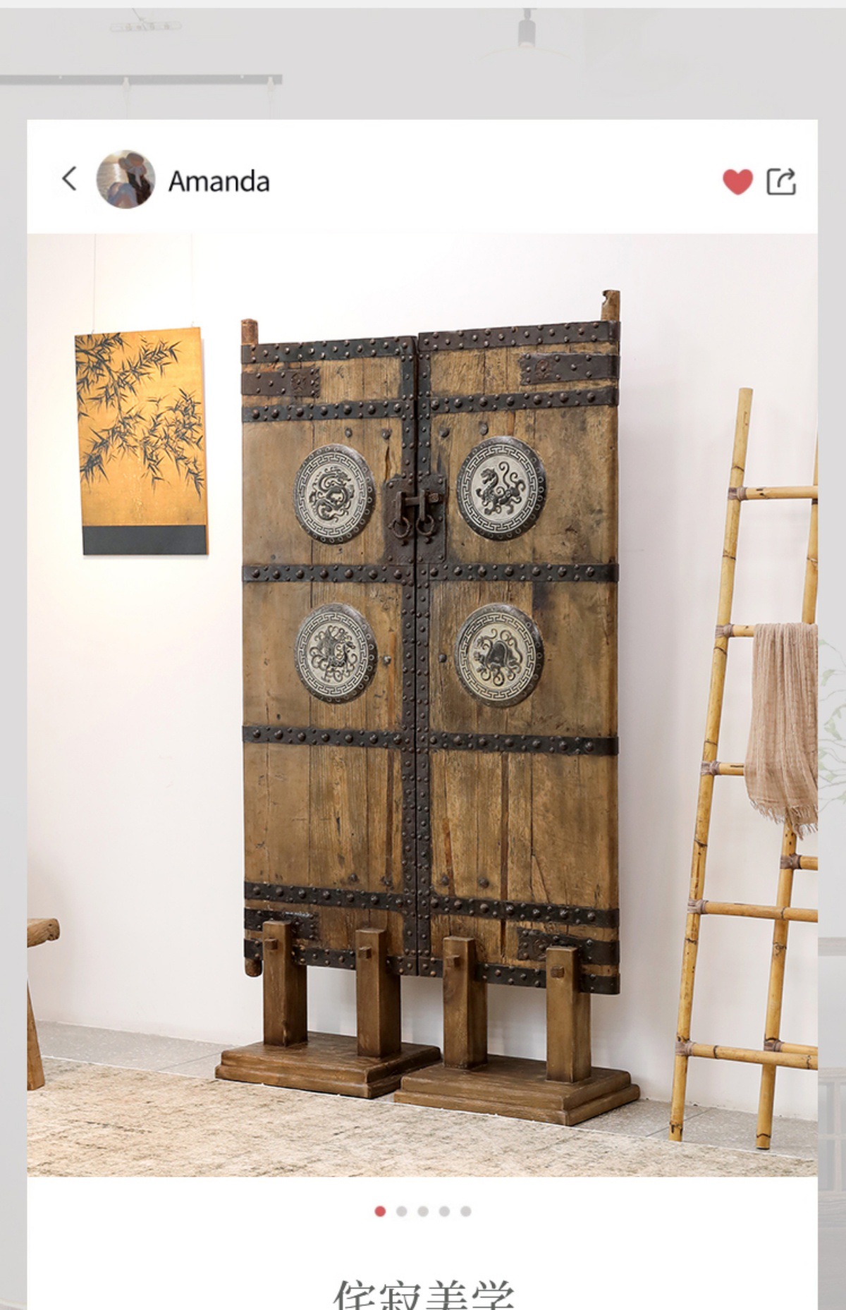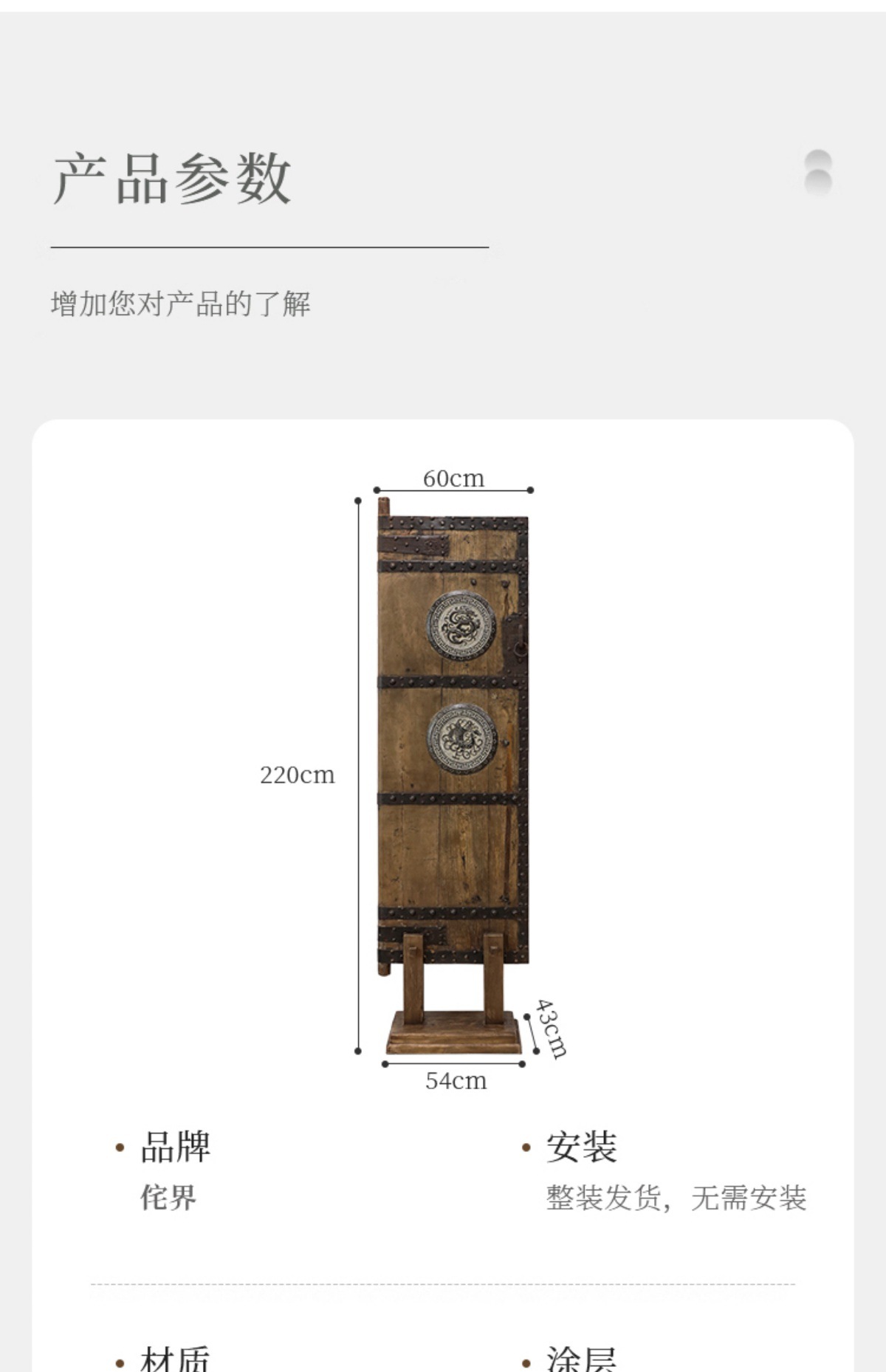 사일런트 바람 파티션 입구 화면 그늘 거실 배경 장식 오래된 느릅 나무 문 패널 오래된 개체스토어 가기