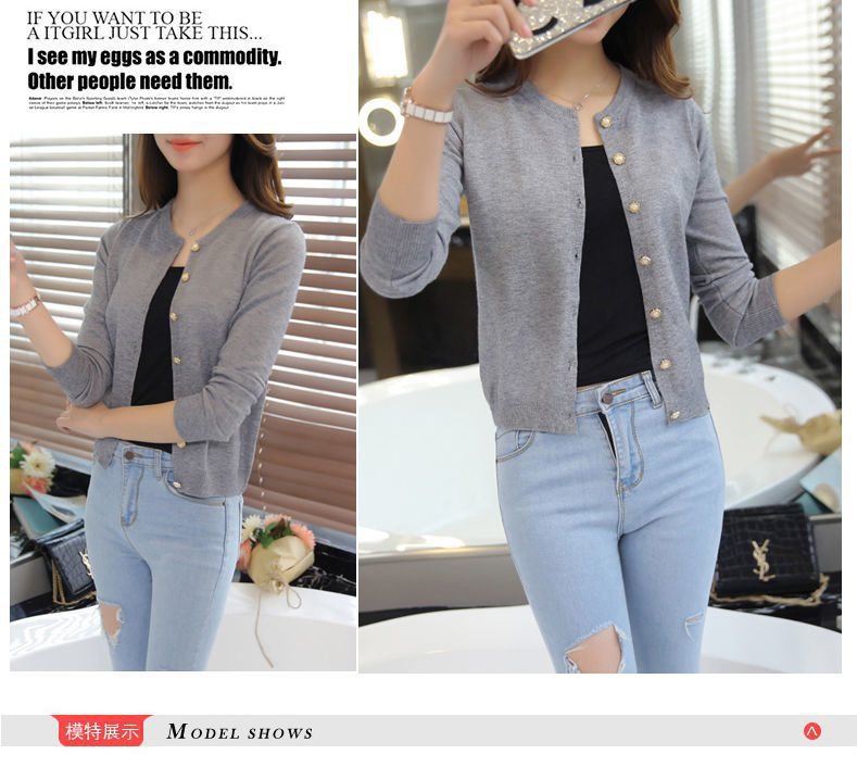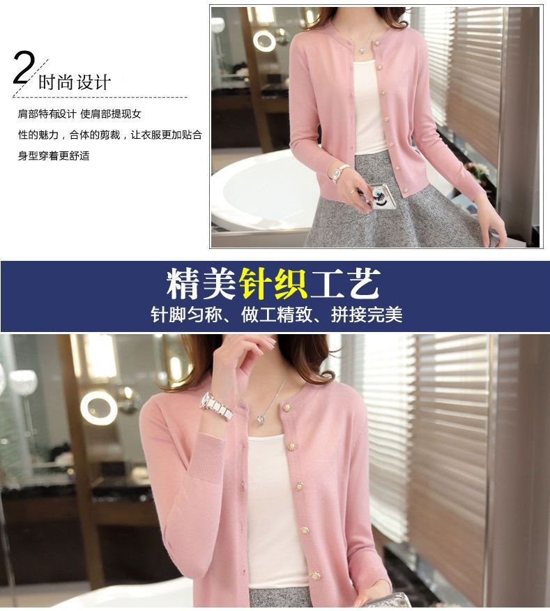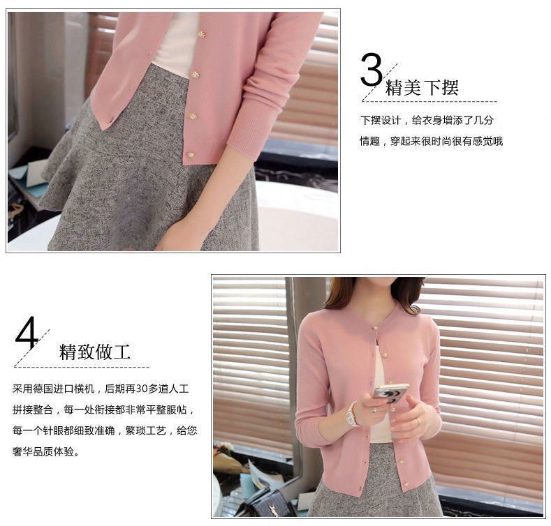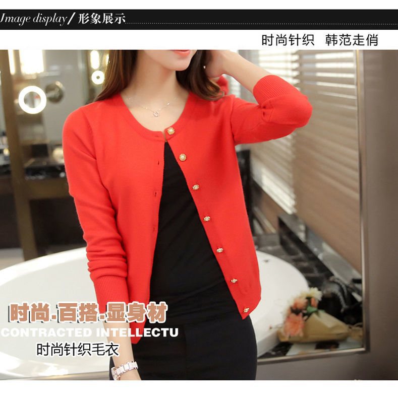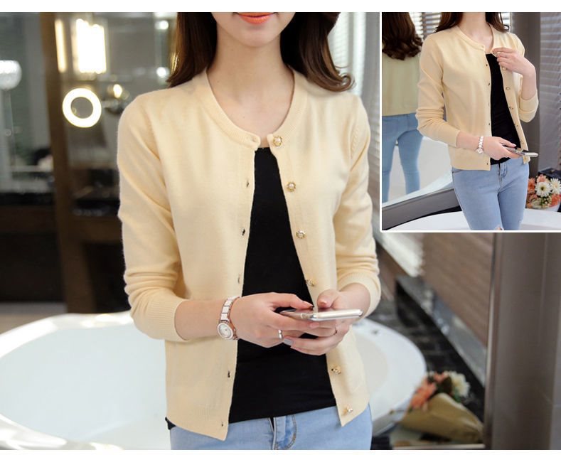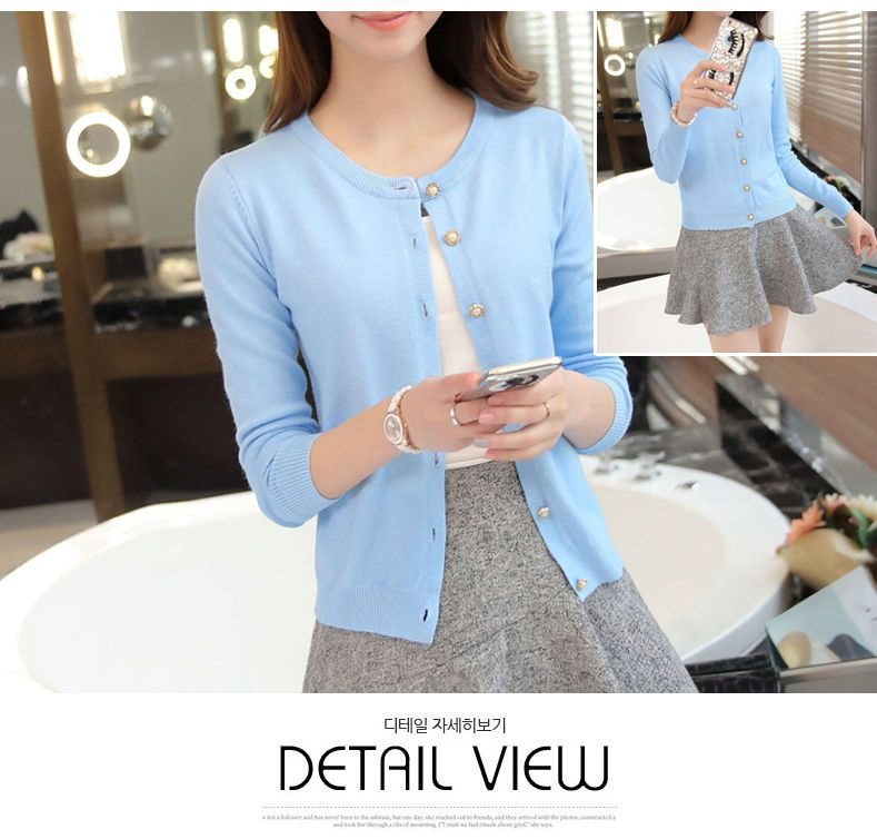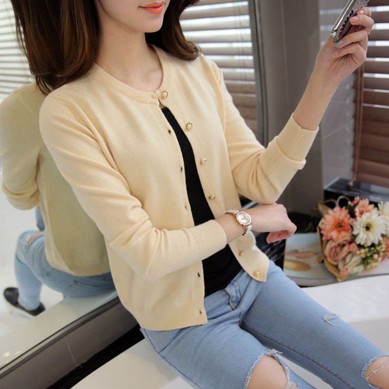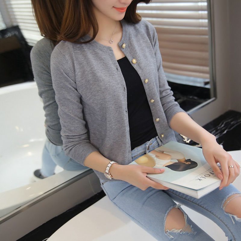 니트 카디건 여성용 얇은 봄 및 가을 외부 착용 라운드 넥 슬림 에어컨 셔츠 쇼트 탑 솔리드 컬러 스웨터 스몰 코트스토어 가기