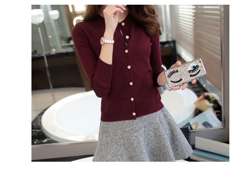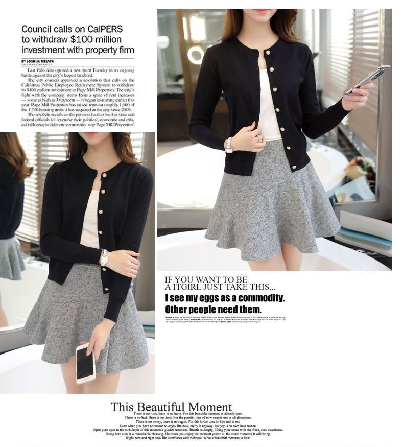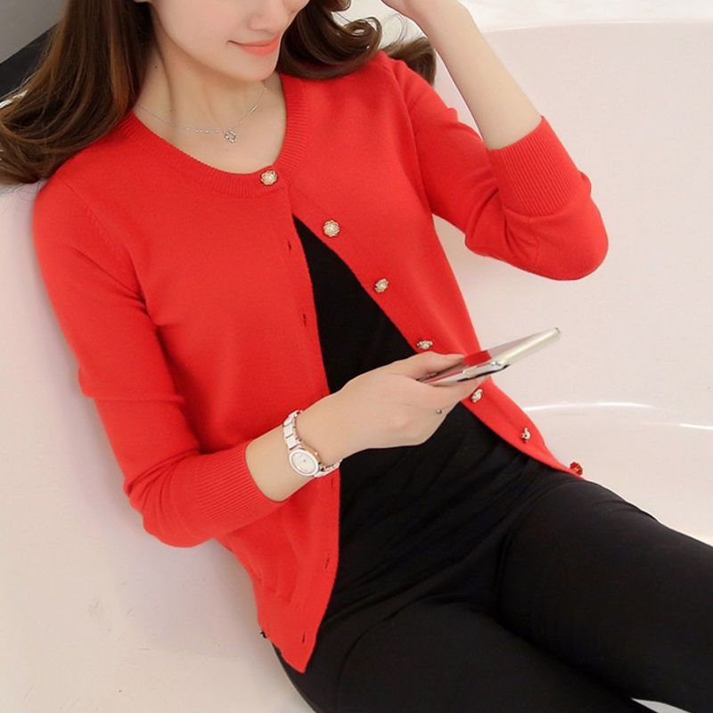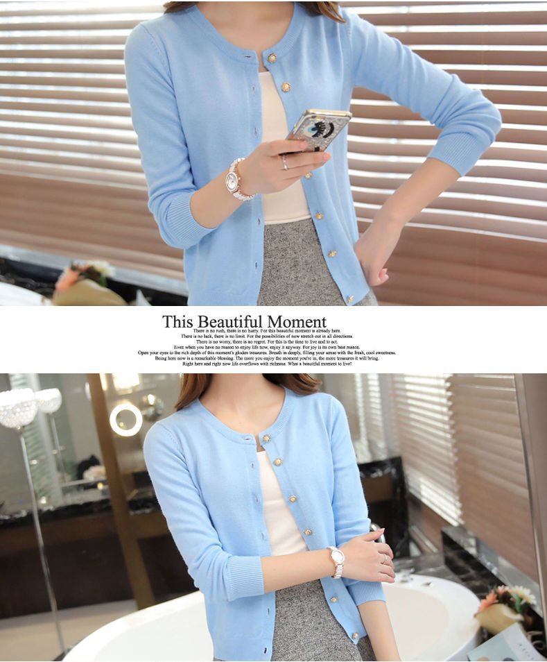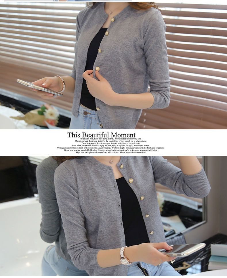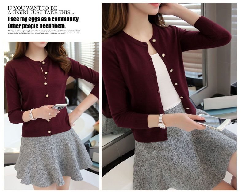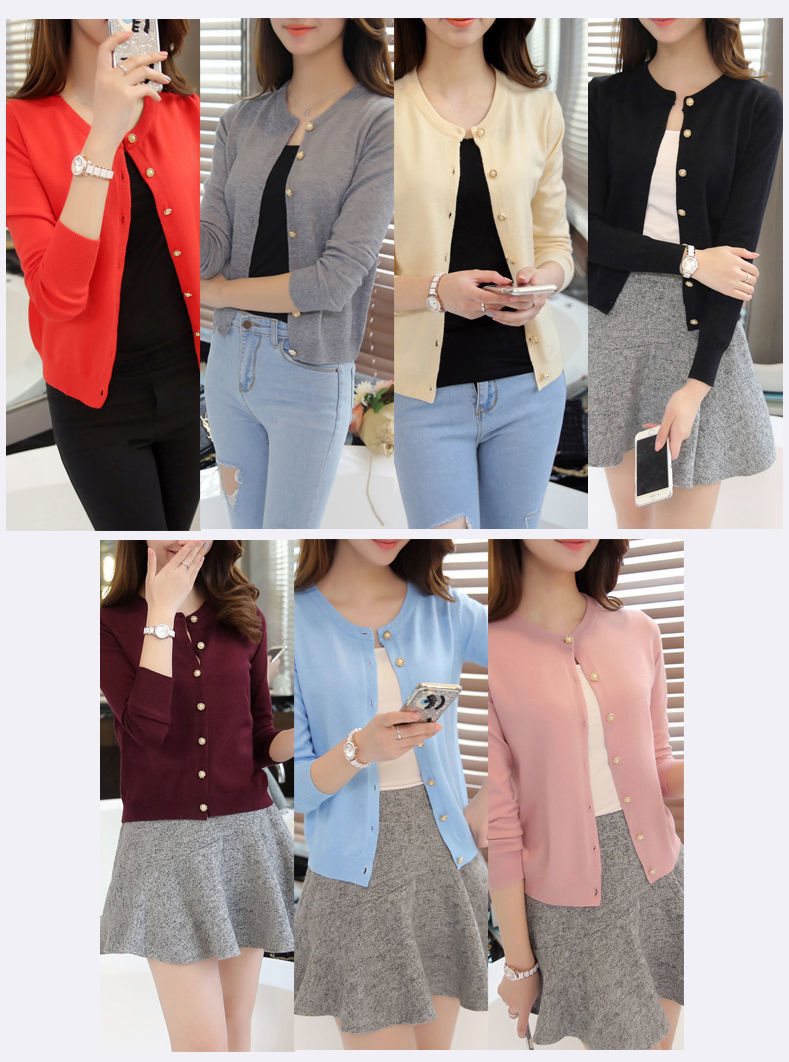 니트 카디건 여성용 얇은 봄 및 가을 외부 착용 라운드 넥 슬림 에어컨 셔츠 쇼트 탑 솔리드 컬러 스웨터 스몰 코트스토어 가기