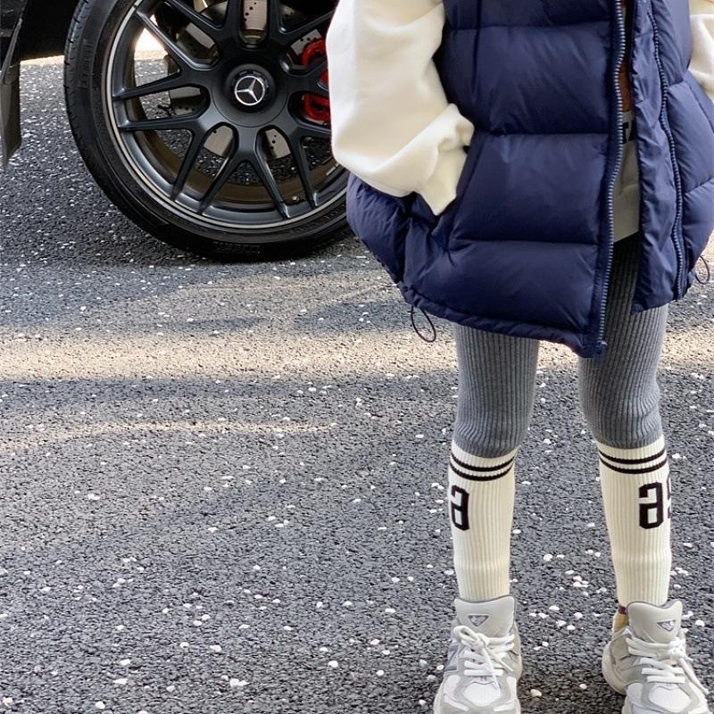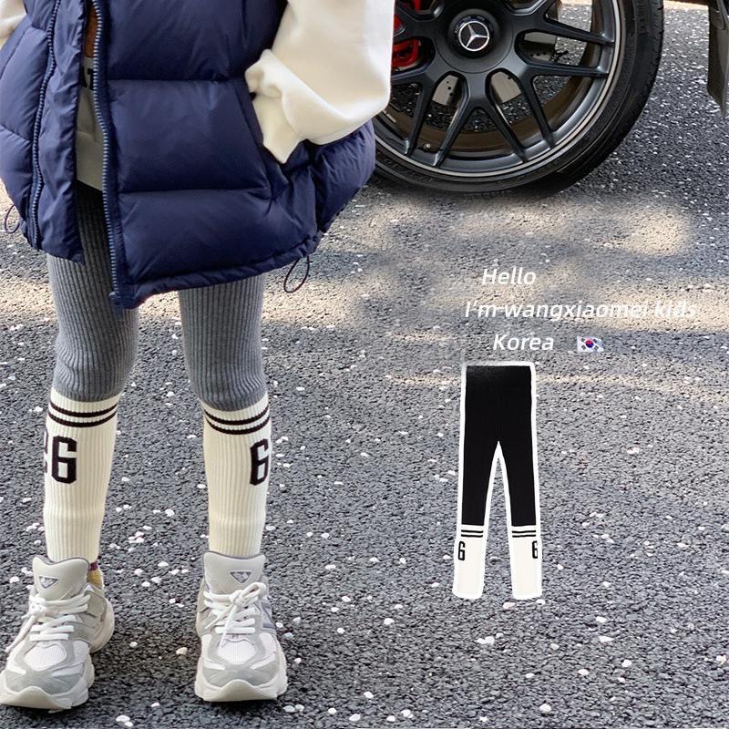 소녀 레깅스 2024 봄과 가을 외부 착용 한국 스타일 어린이 바지 높은 탄성 니트 바지 아기의 겨울 핏 바지스토어 가기